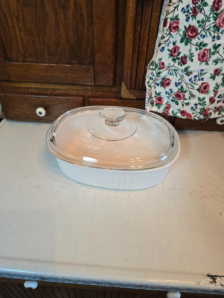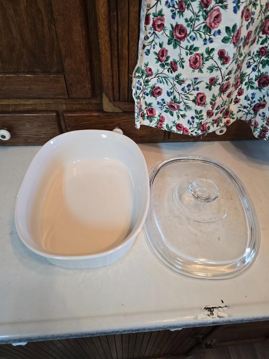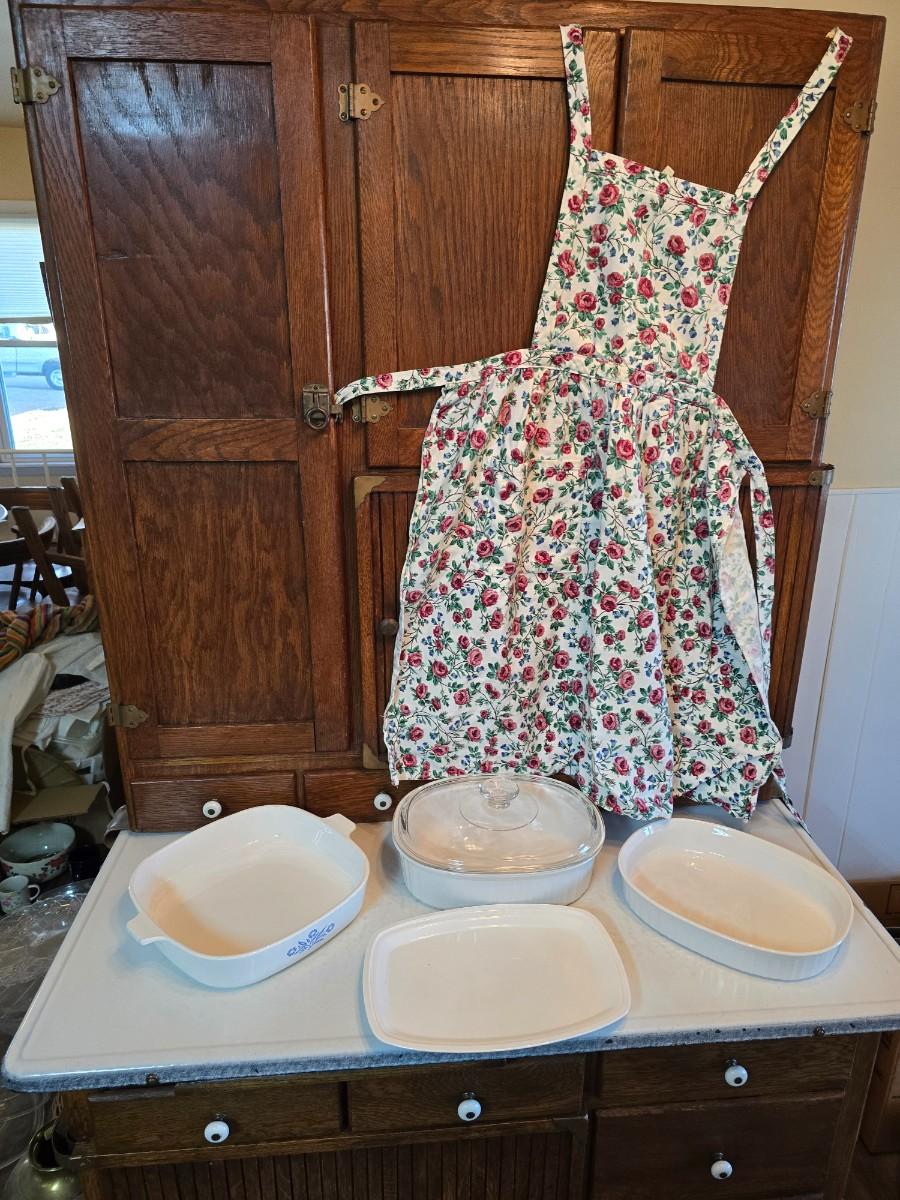 Corningware cookware with Litton micro-browner - and an apron