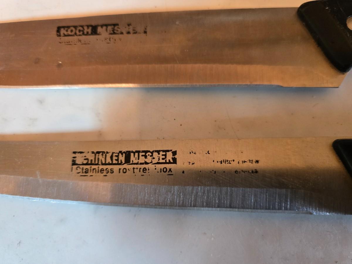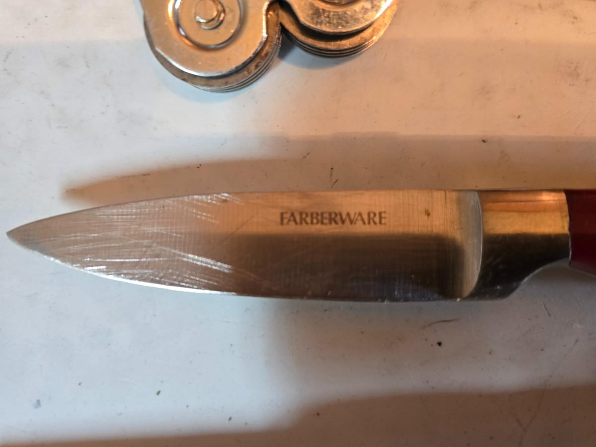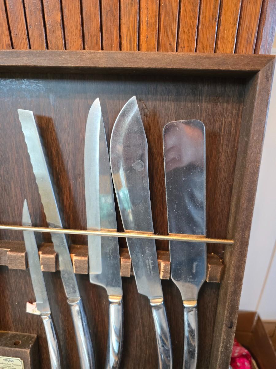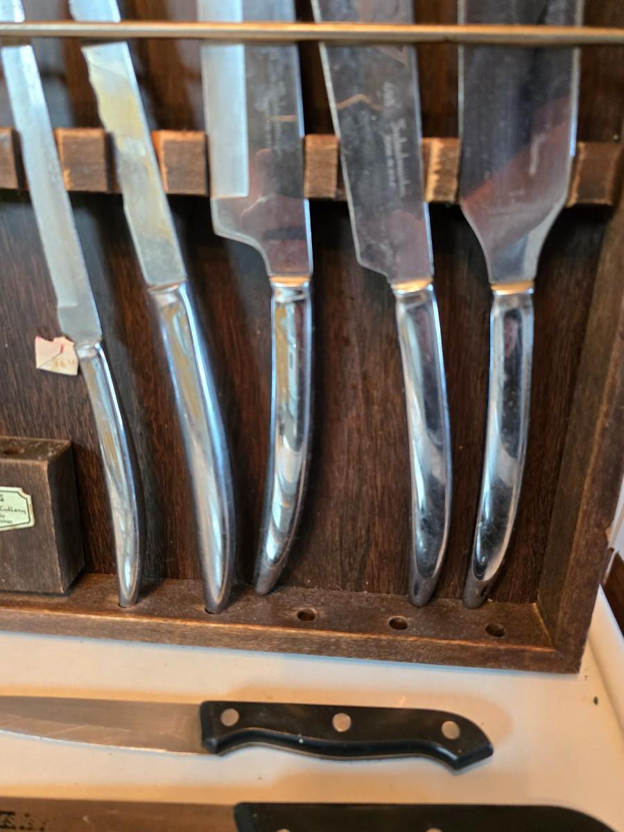 Kitchen knives - including new set of Pioneer branded Chuppa knives - sharpening stone and tools and a cutting board