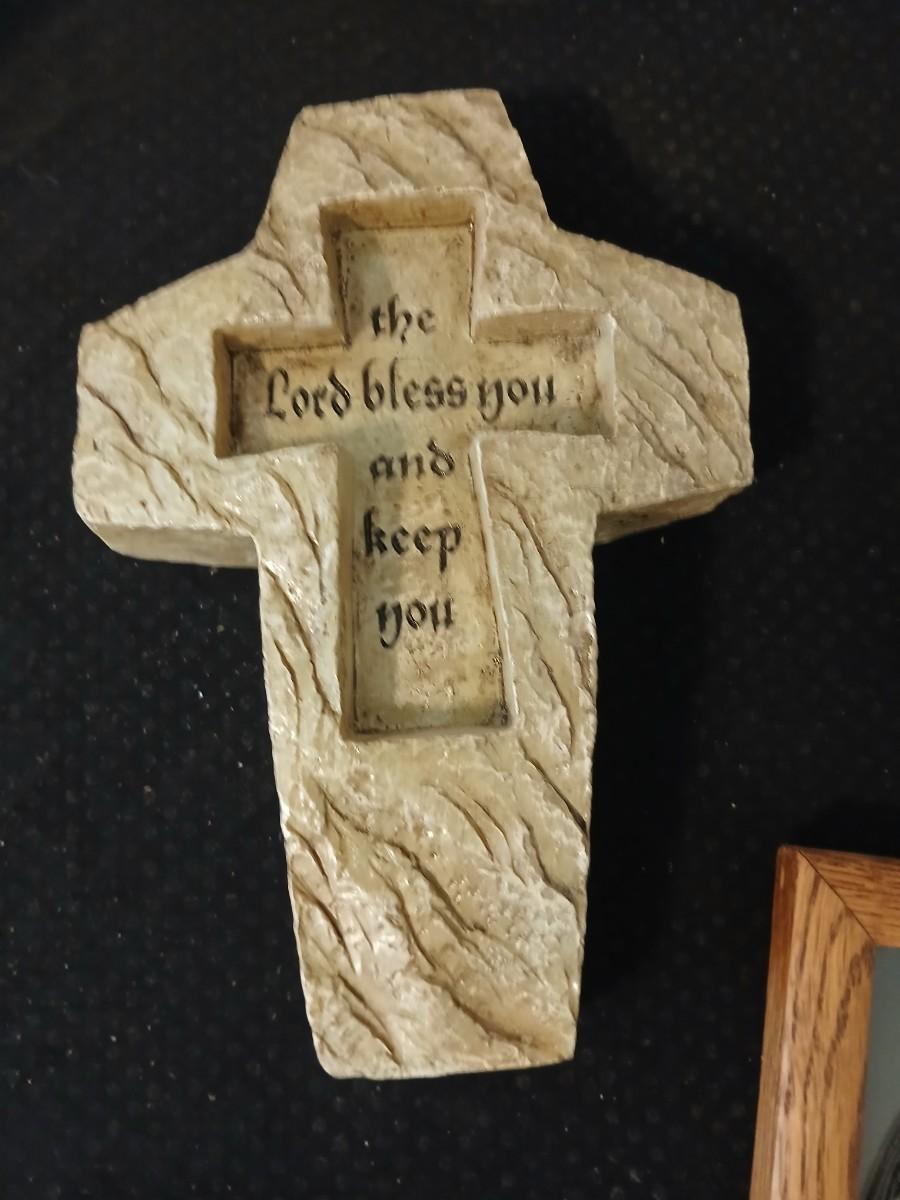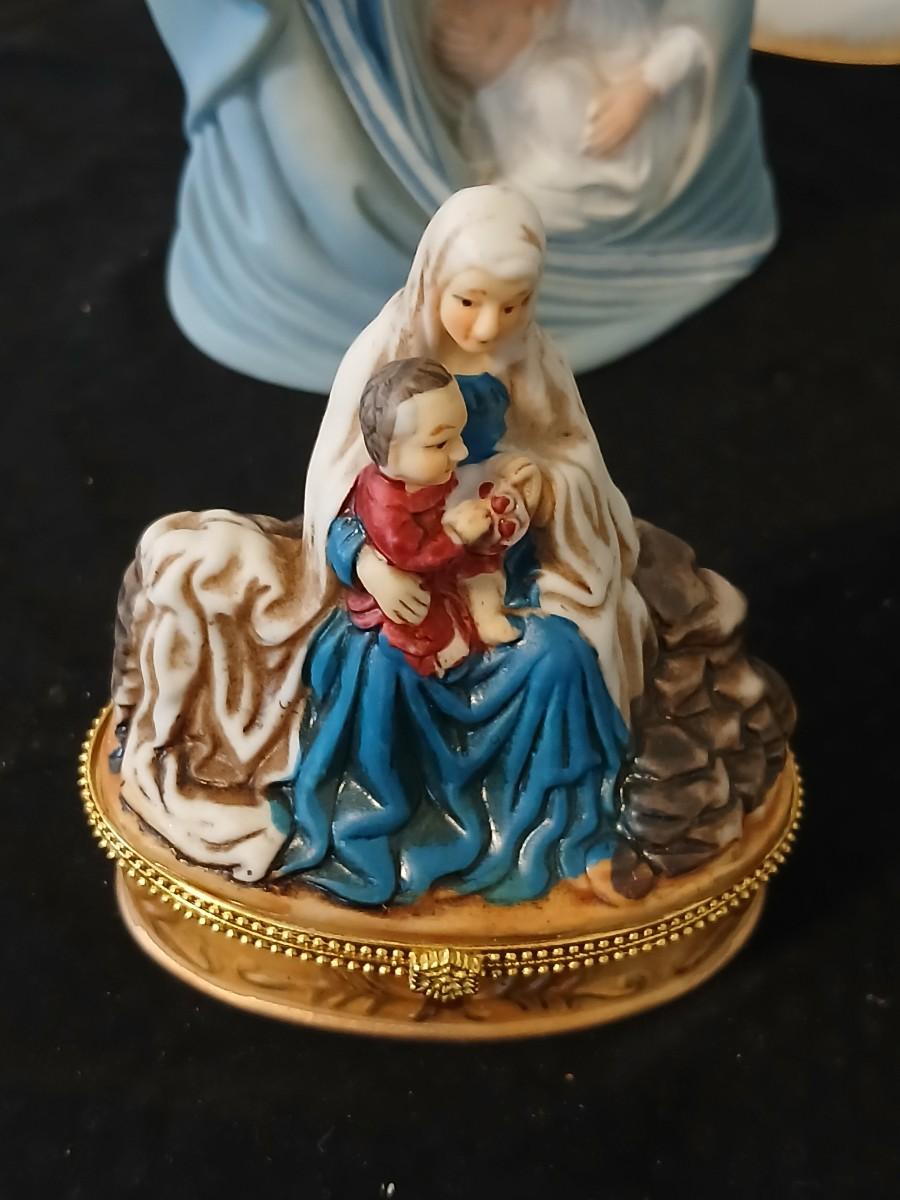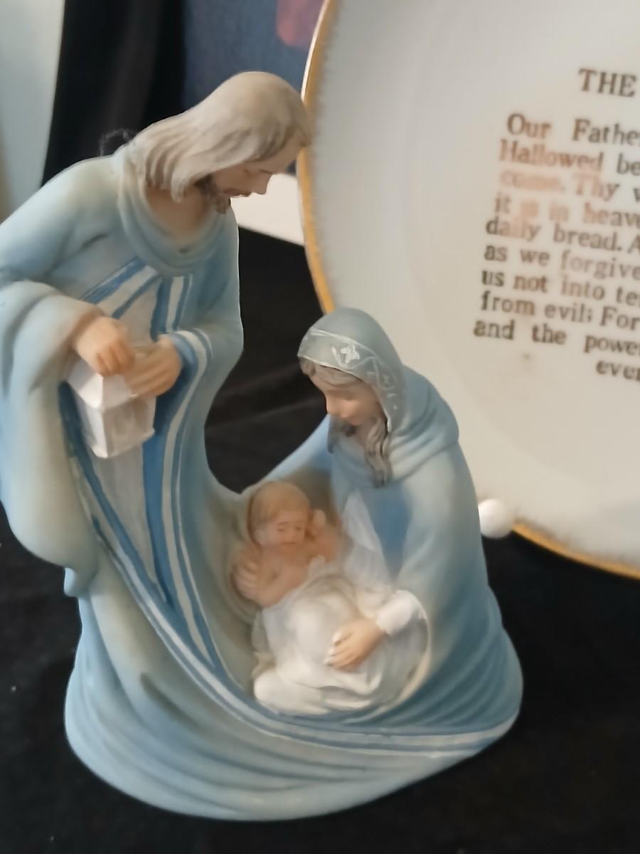 Religious decorative items - Nativity Scene Holy Family -Madonna & Child trinket box - Christian cross made of resin - framed Jesus Litho - and more