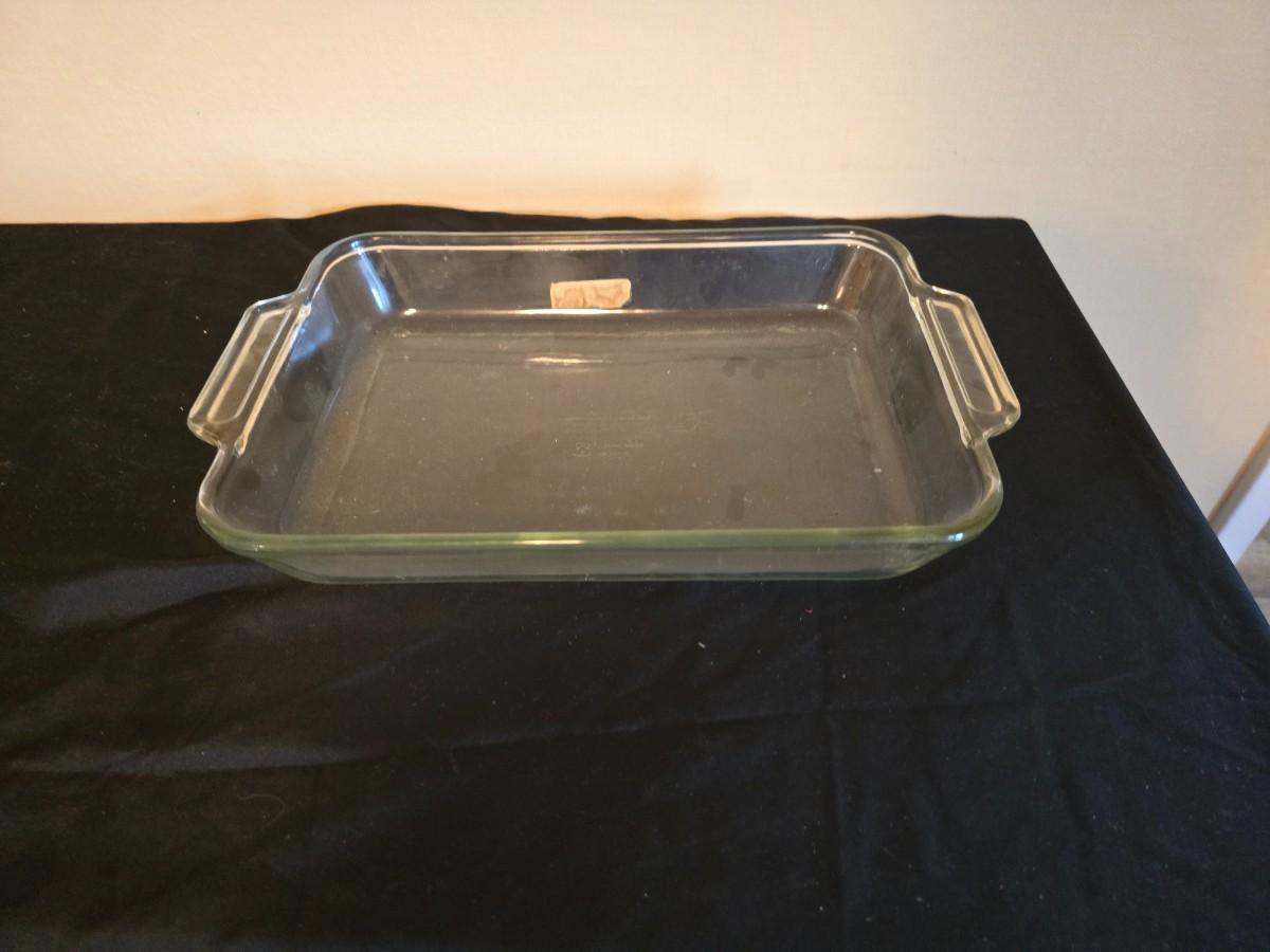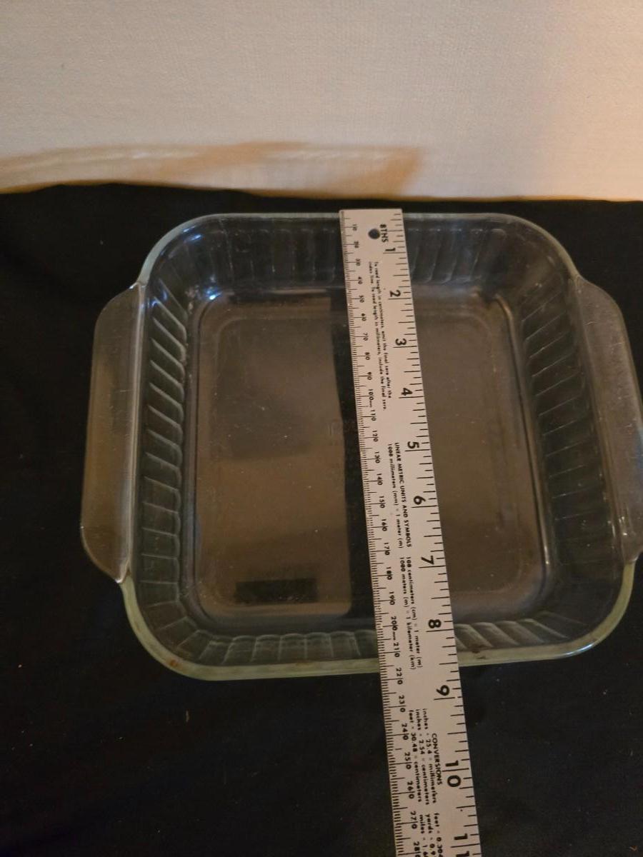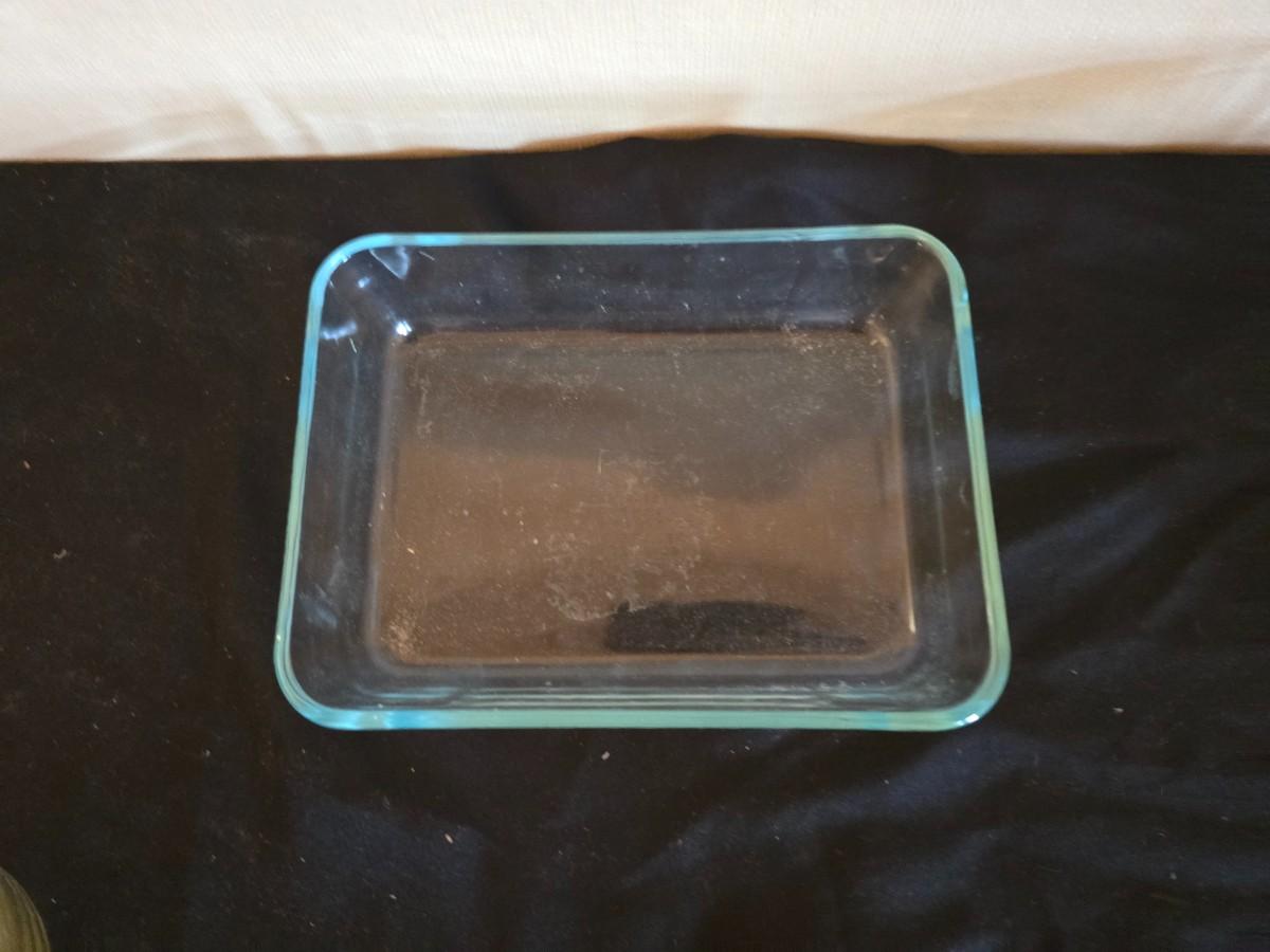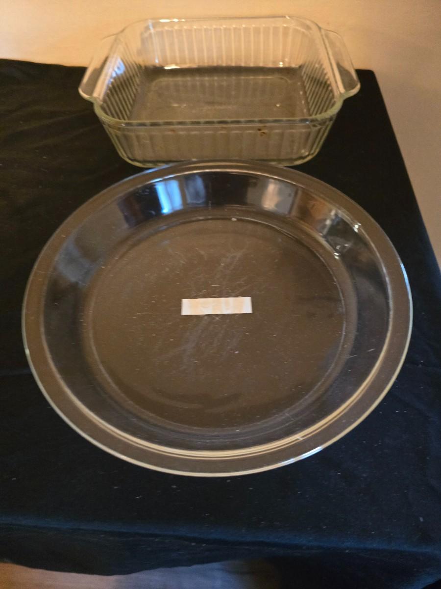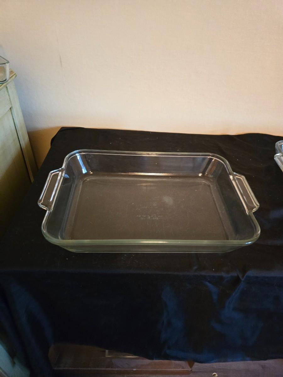 Pyrex / Anchor hocking Clear Glass & aluminum baking pans with vintage cookie cutters