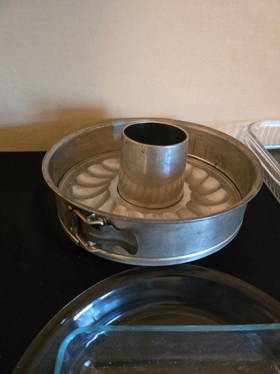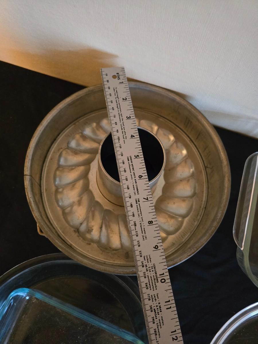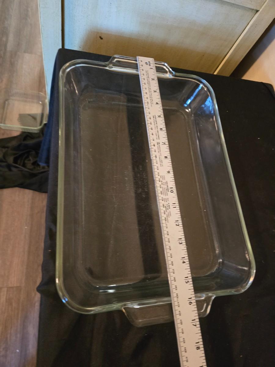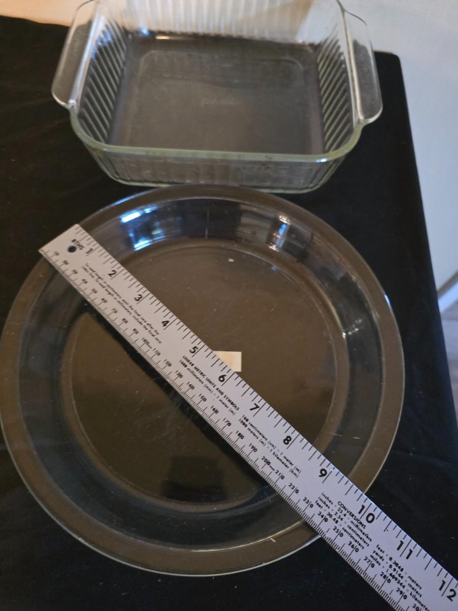 Pyrex / Anchor hocking Clear Glass & aluminum baking pans with vintage cookie cutters