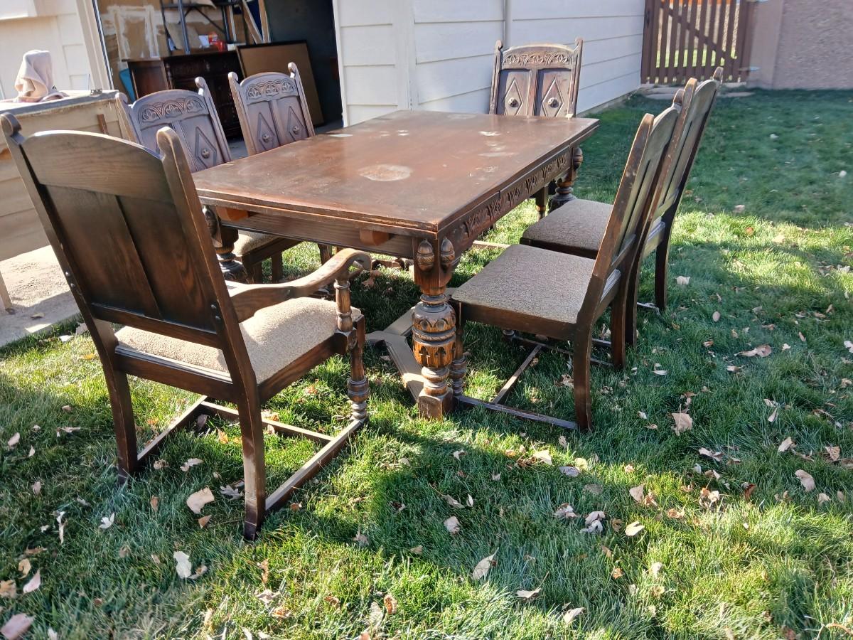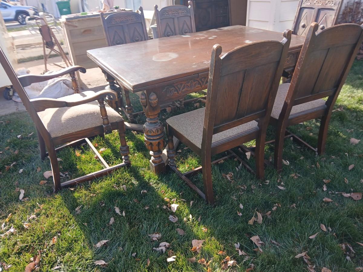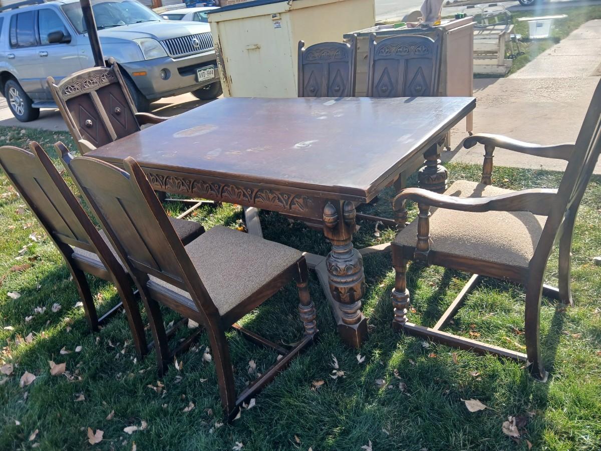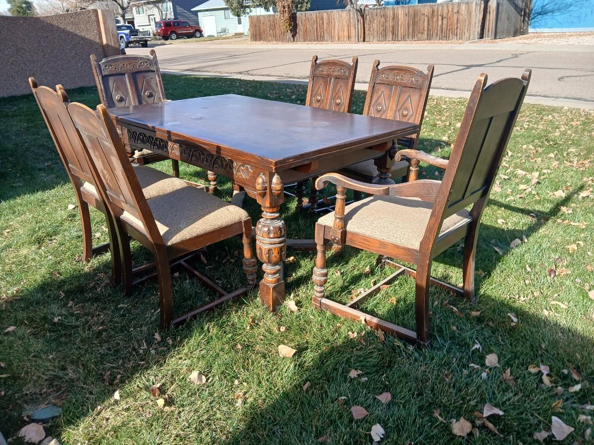 Antique dining room table with six matching chairs well over 100 years old!