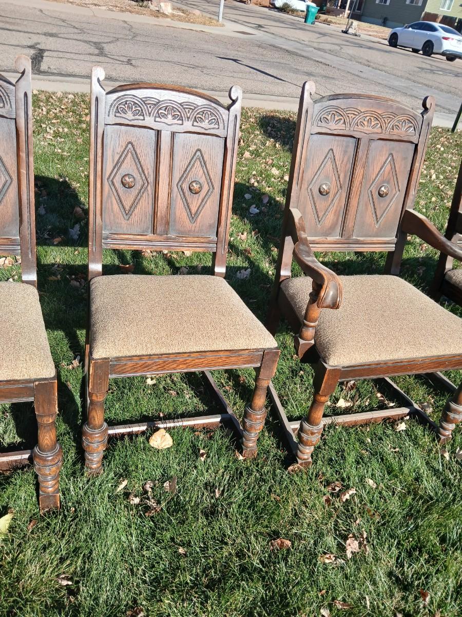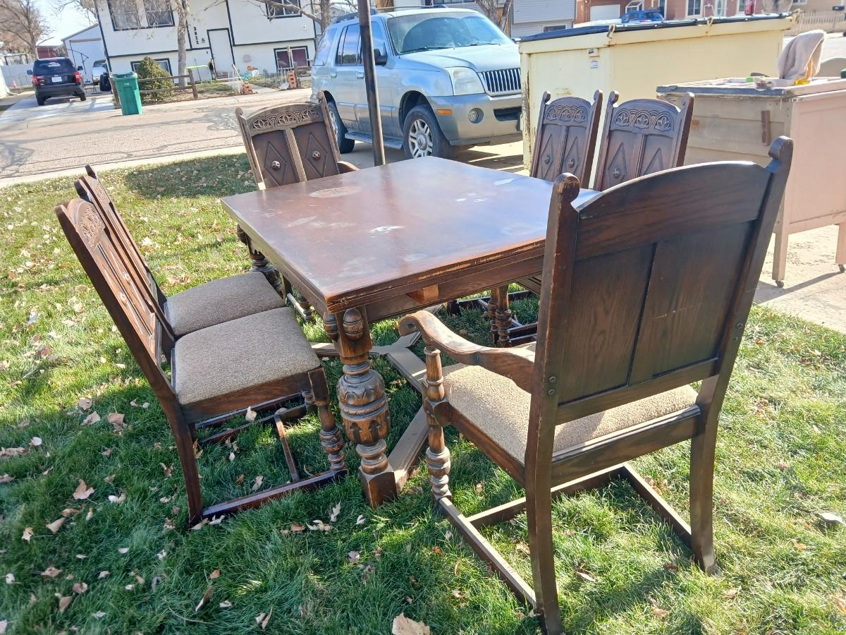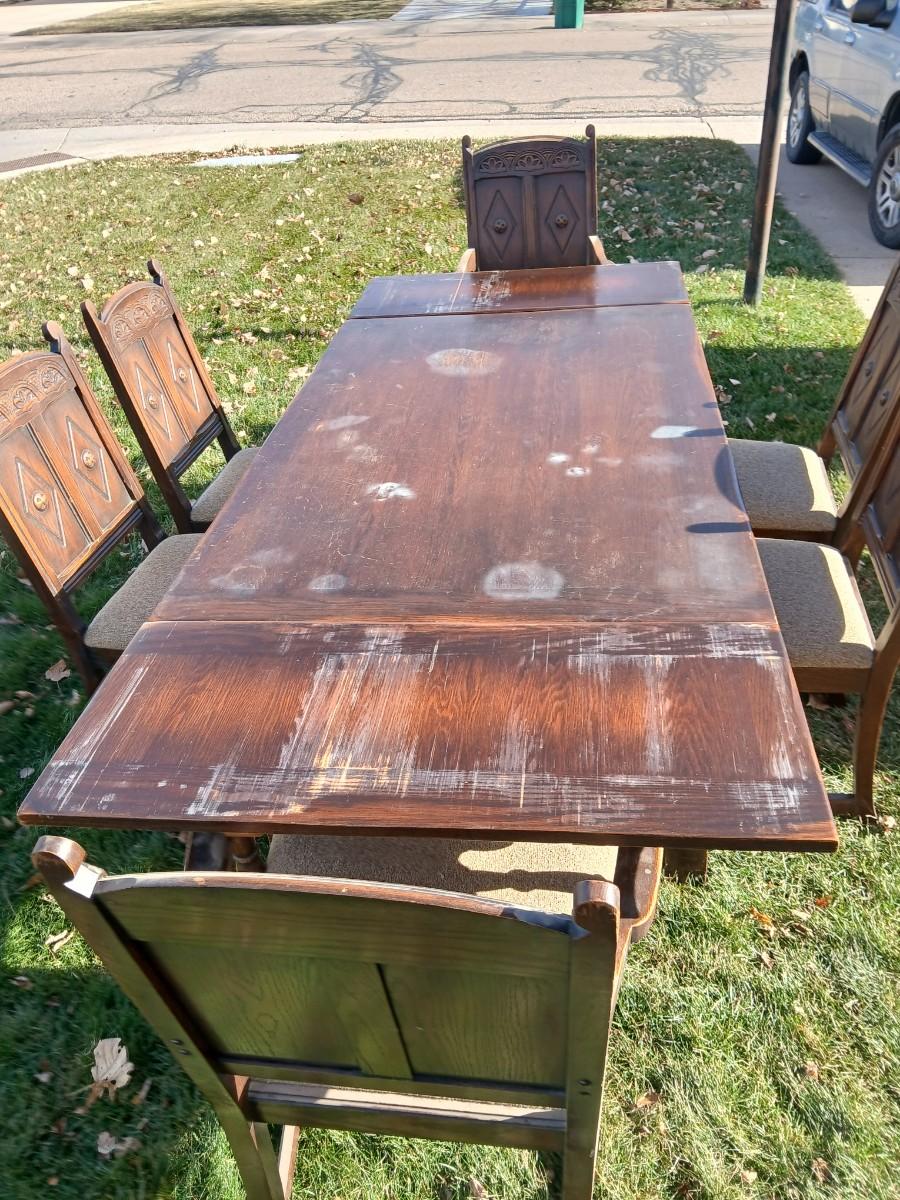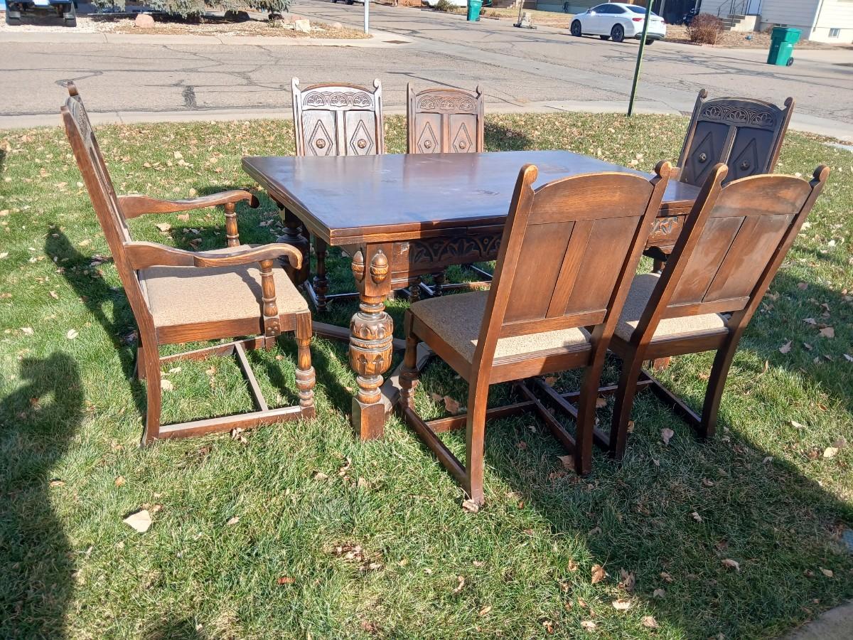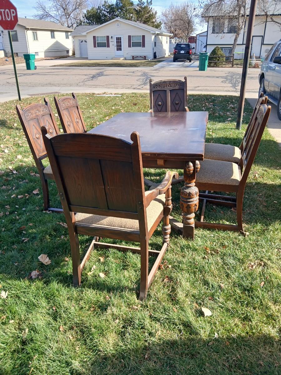 Antique dining room table with six matching chairs well over 100 years old!
