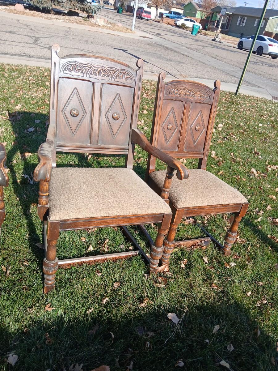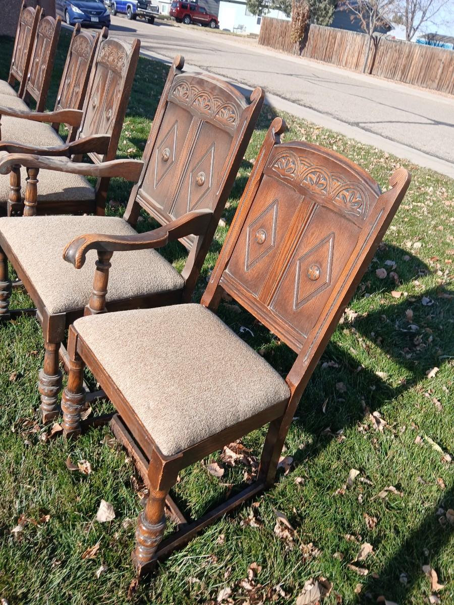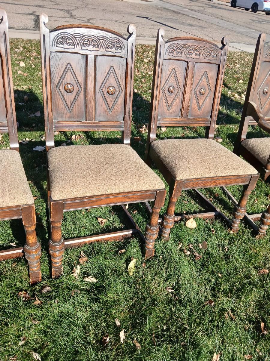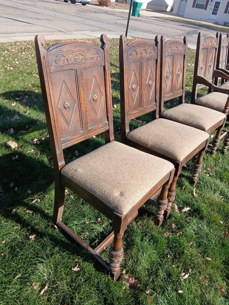 Antique dining room table with six matching chairs well over 100 years old!