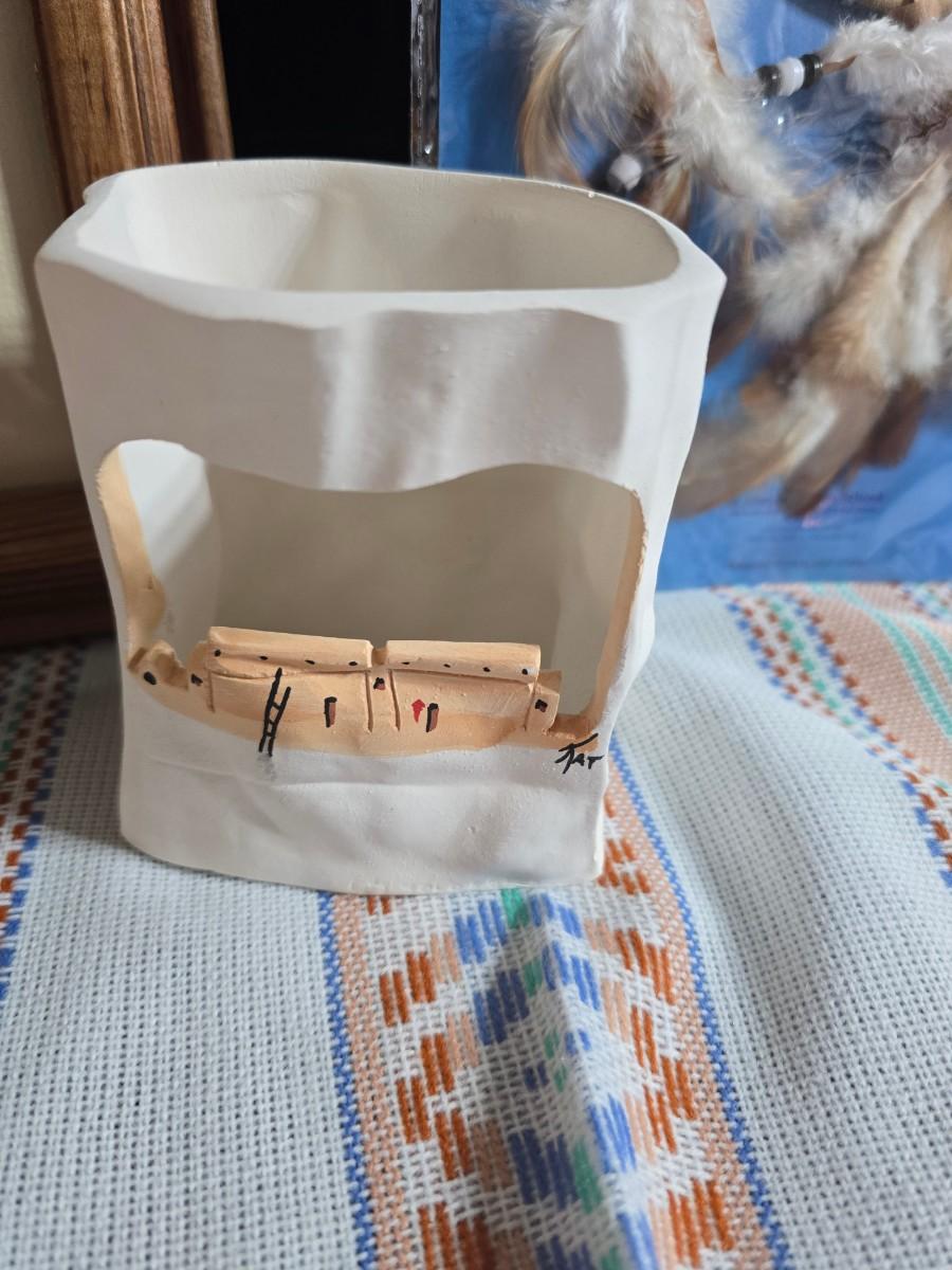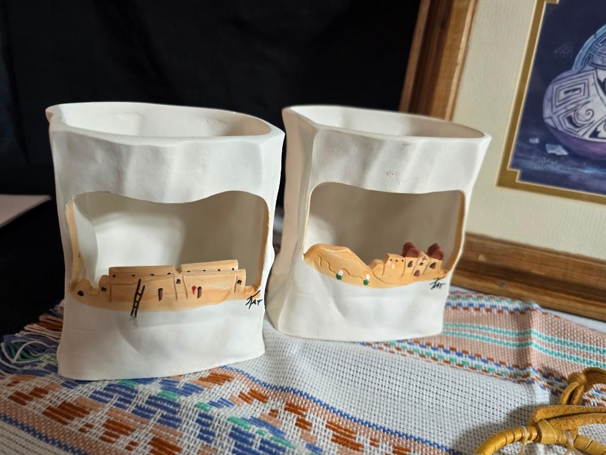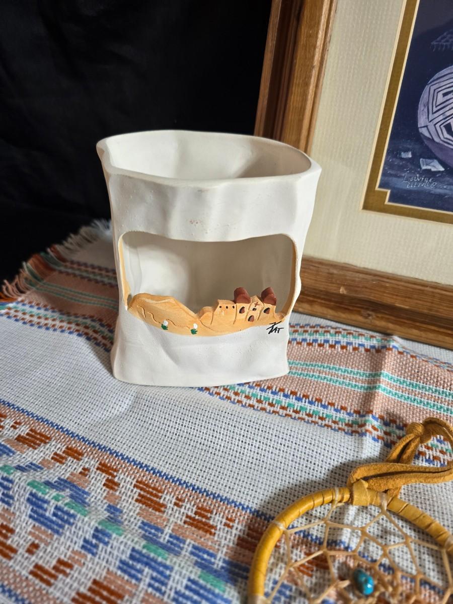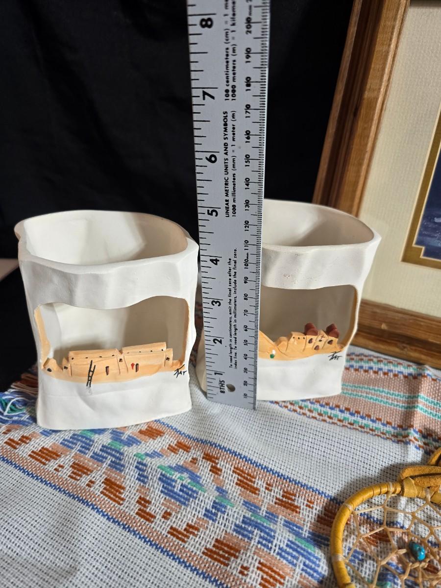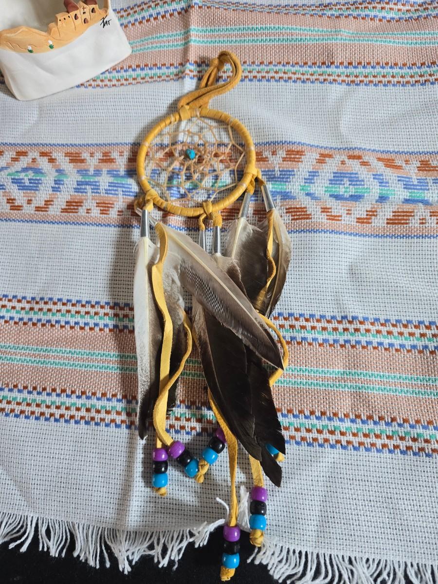 Laverne Elliott framed artwork with arrowhead and pottery - Dreamcatcher s- hand carved & painted candle sconces and a leanin' tree Indian poster