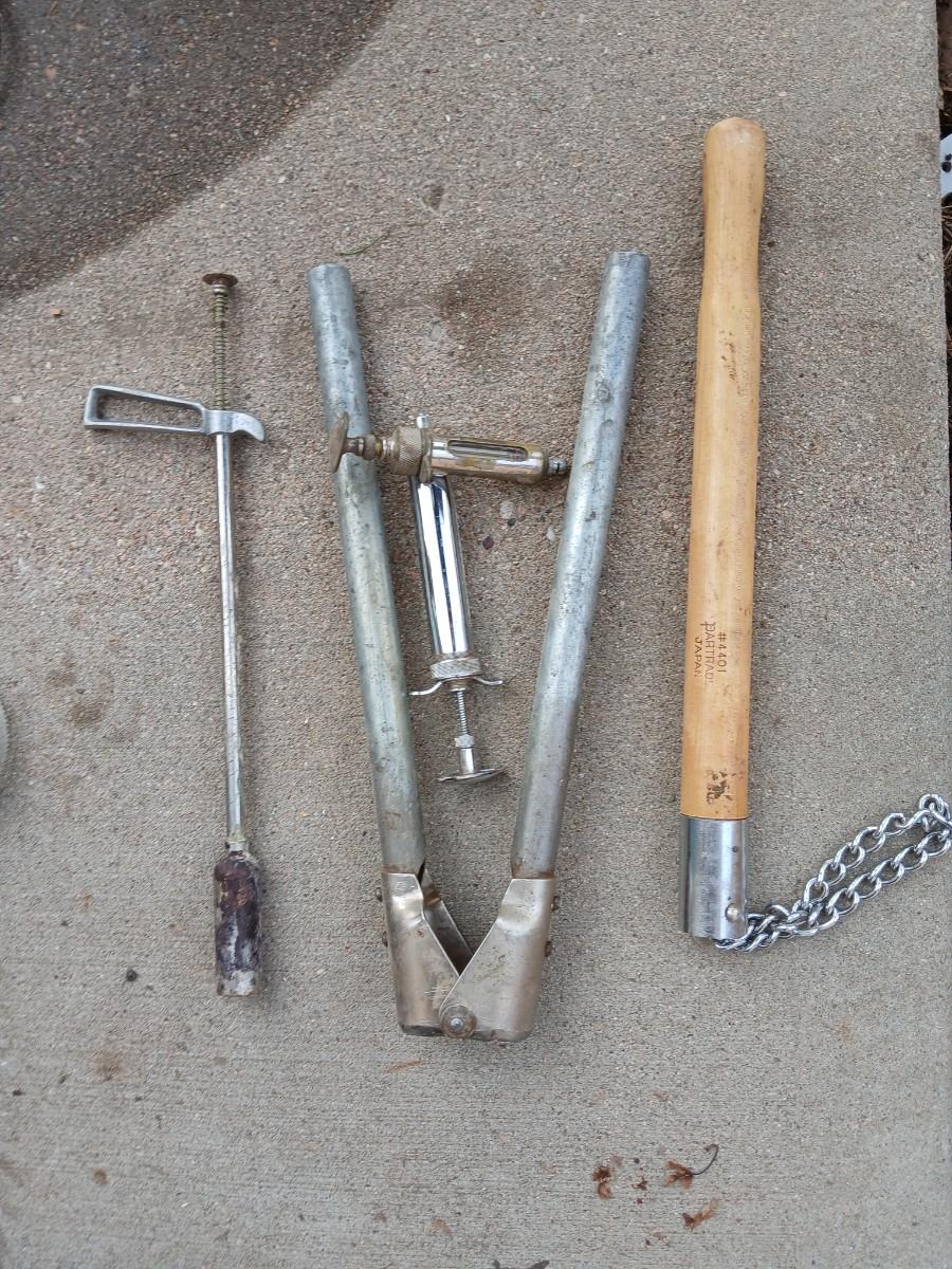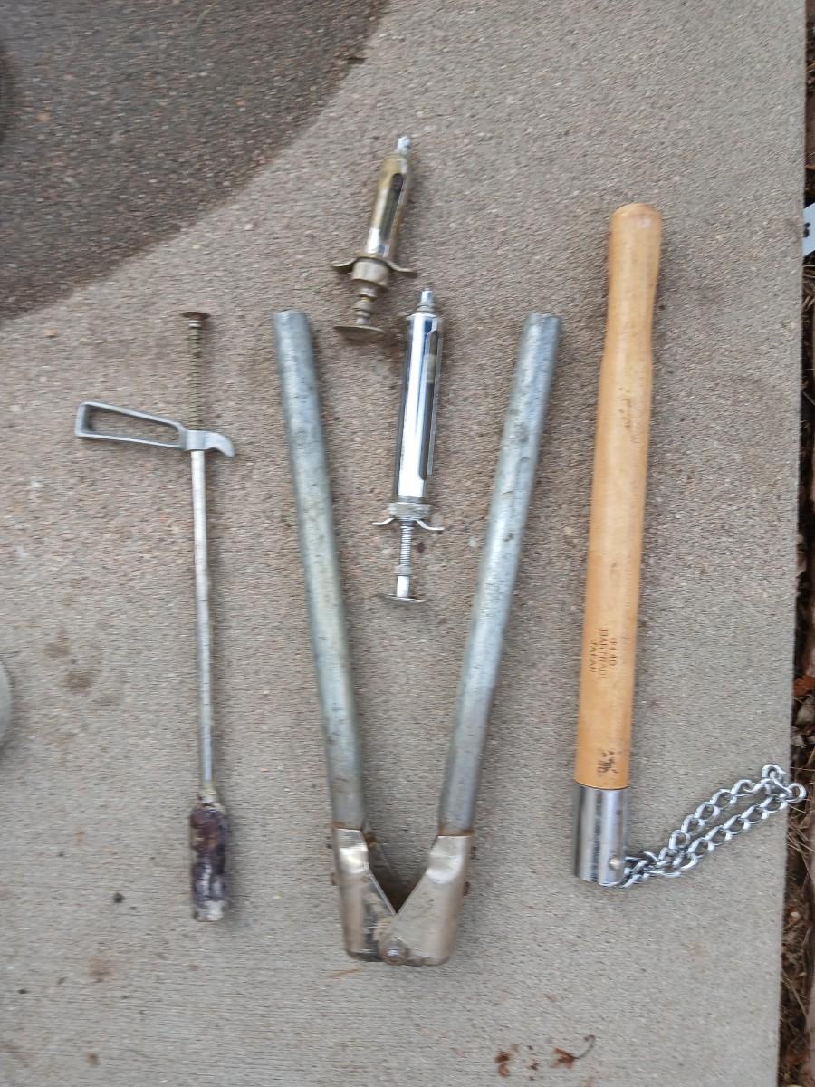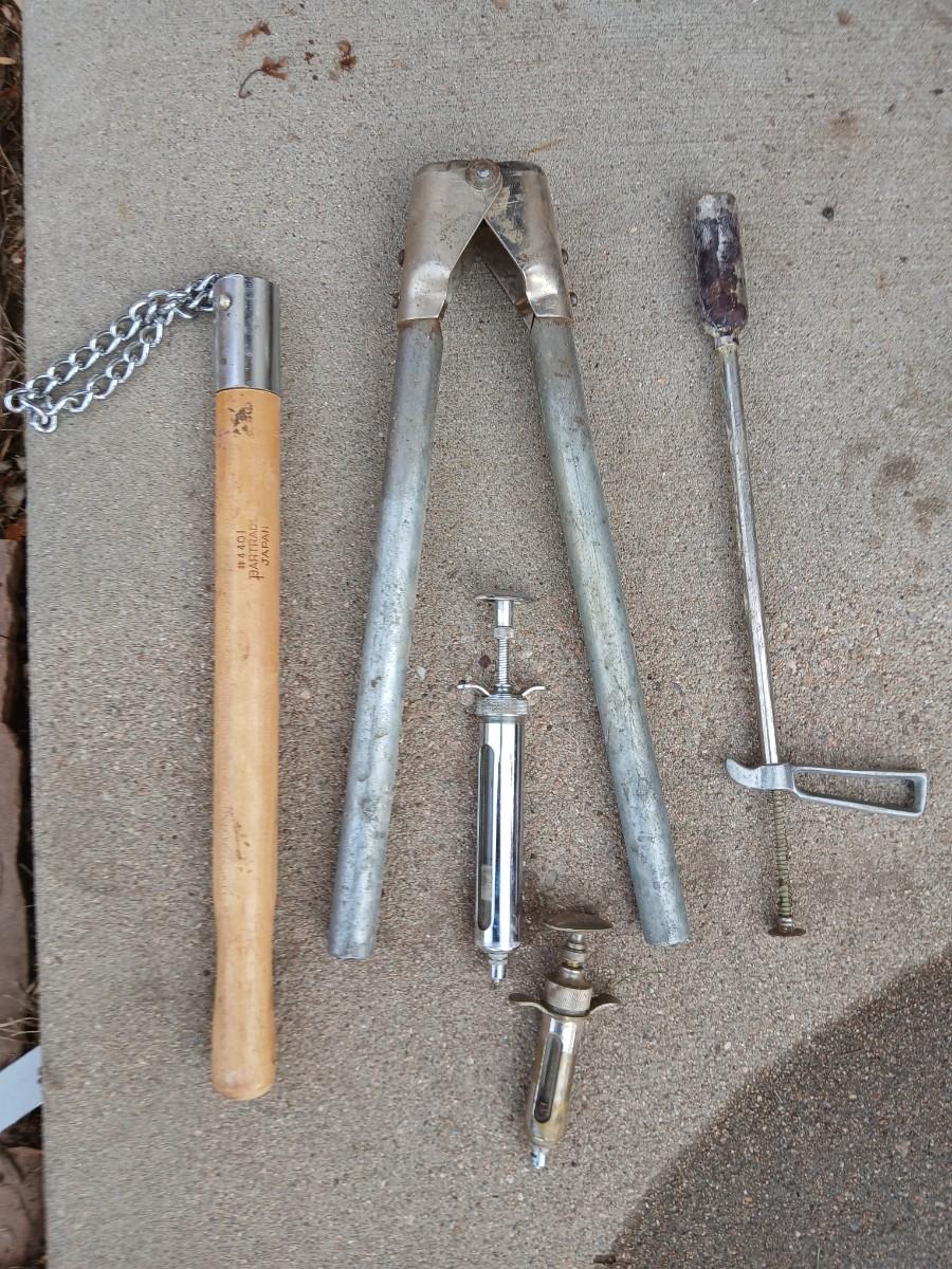 Livestock Veterinary tools - Dehorner - Metal syringes - bolus gun and more