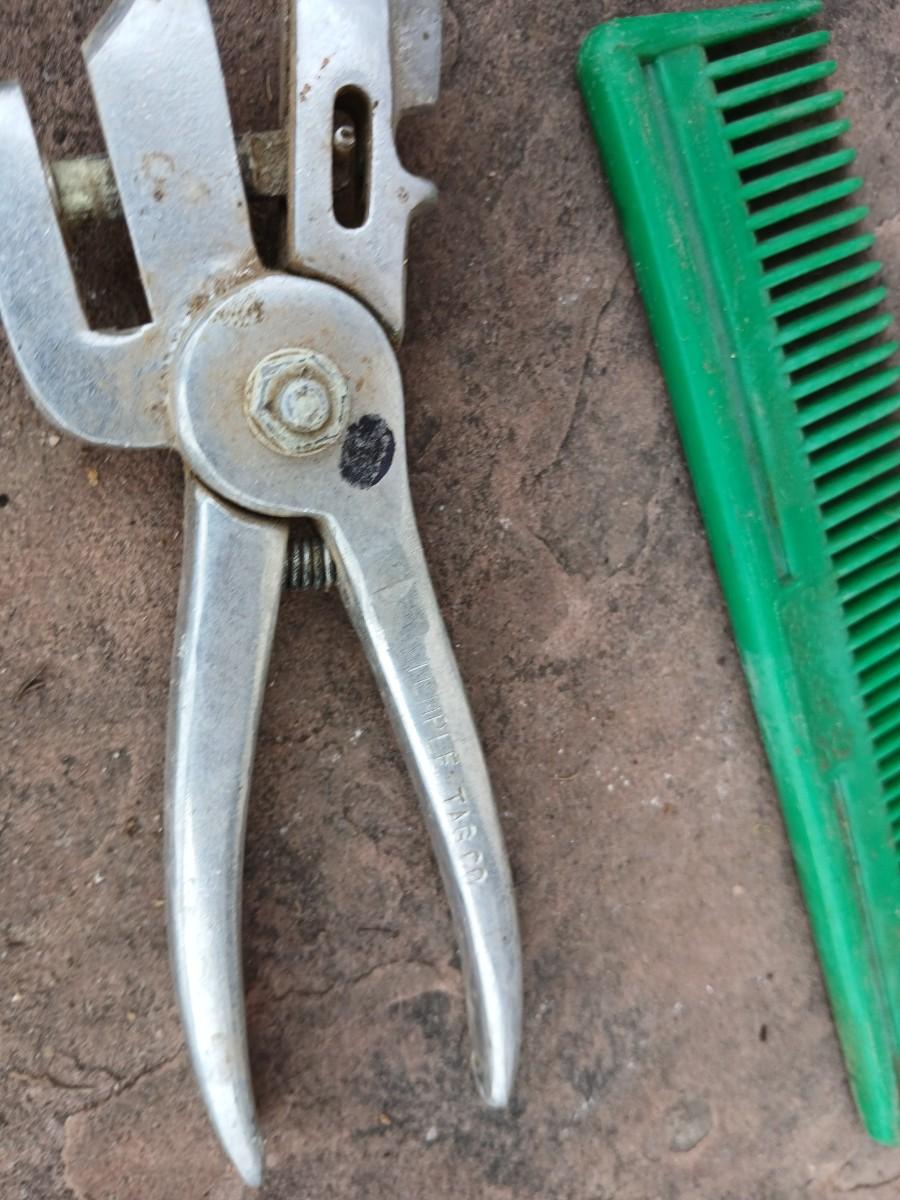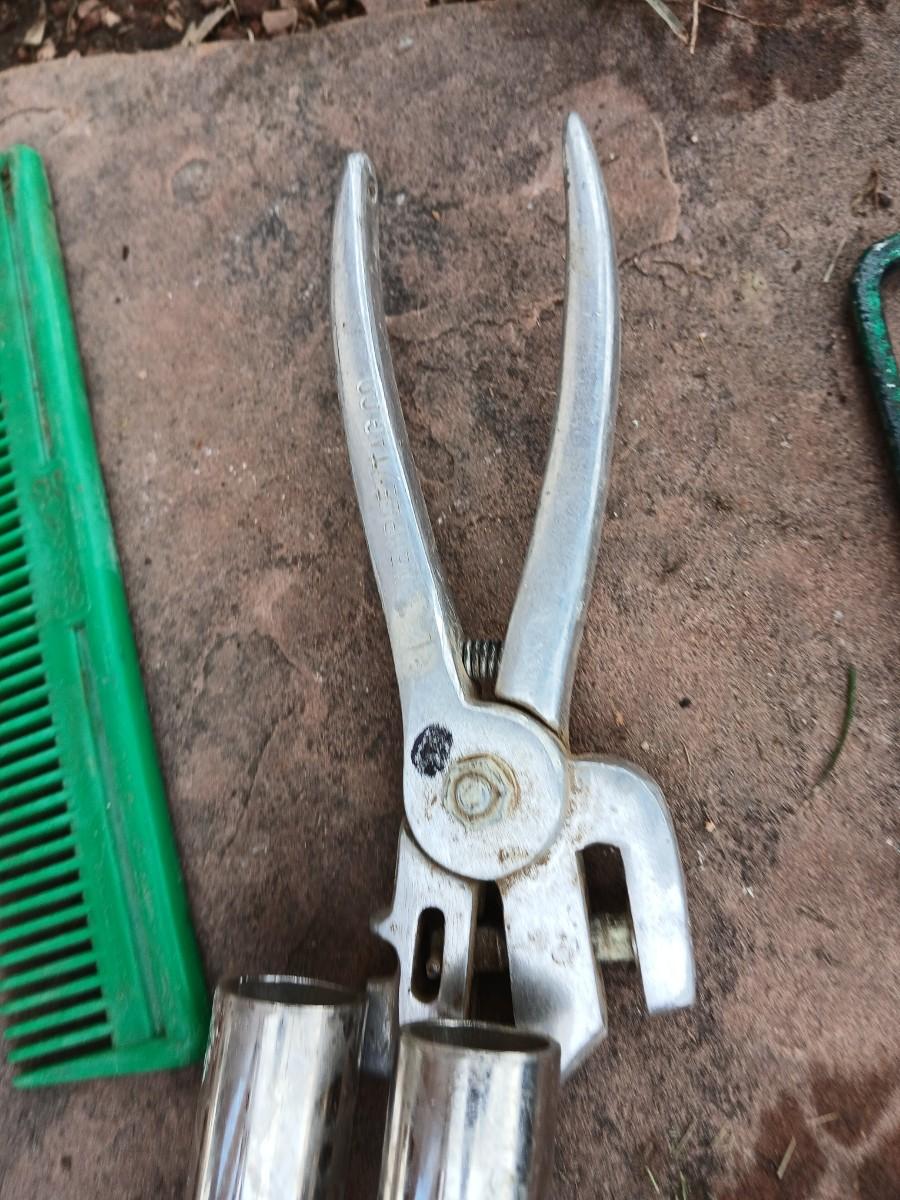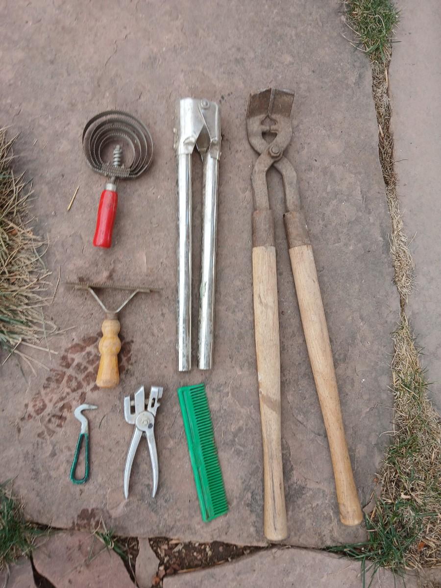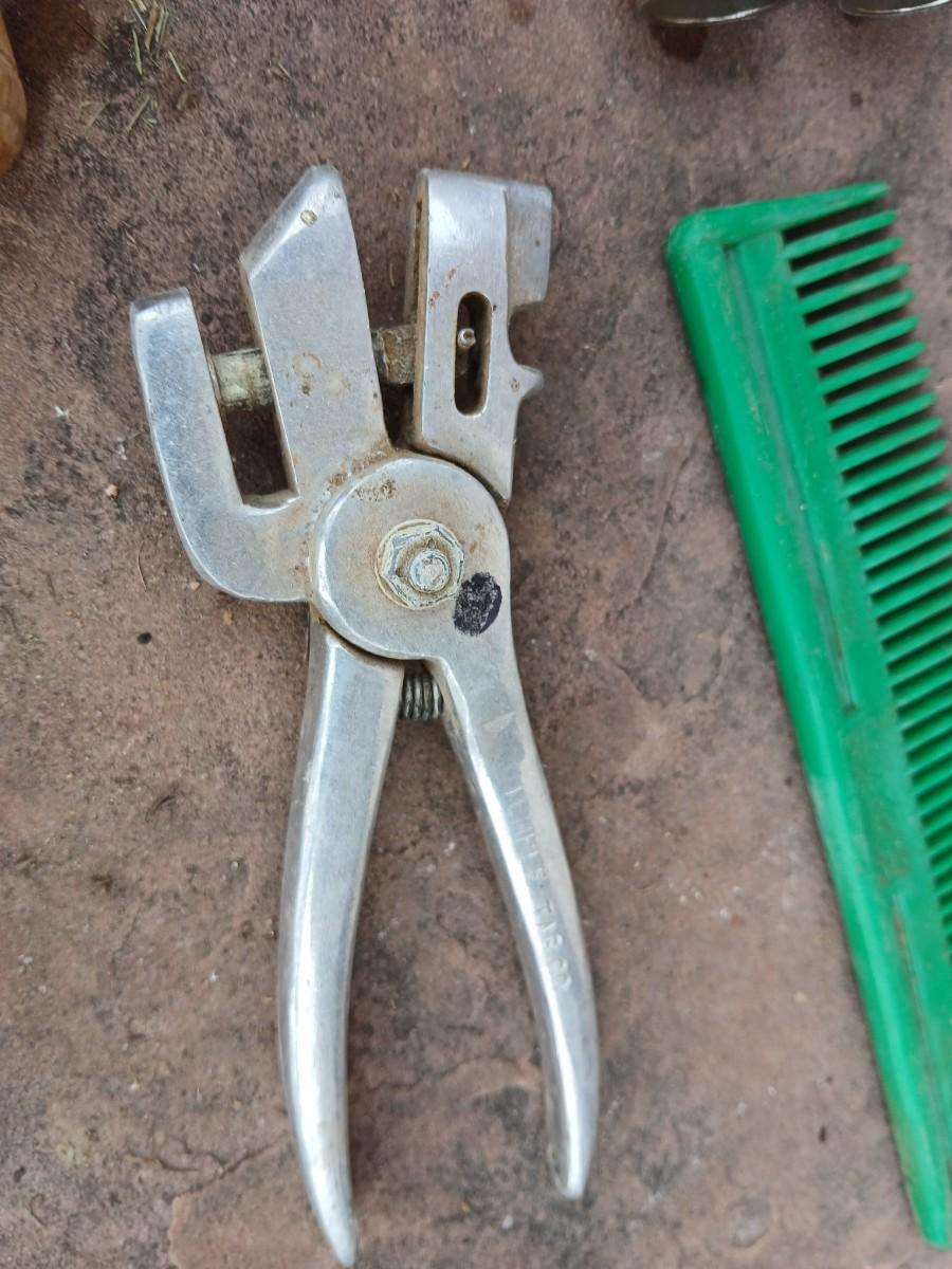 Livestock items - dehorner - trimmers - tagger - assortment of brushes and more