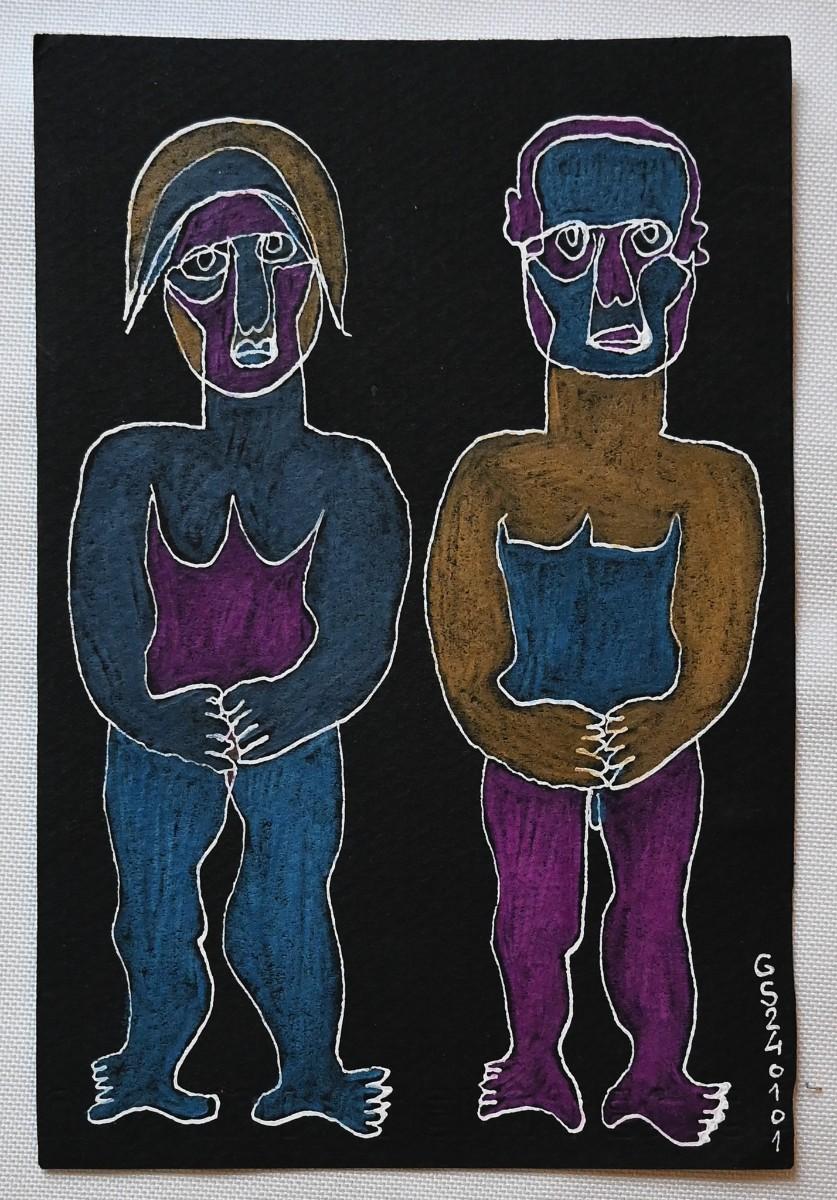 An untitled work by artist Gerard Sendrey (French, 1928-). Mixed media. Approx. 6.5" x 4".