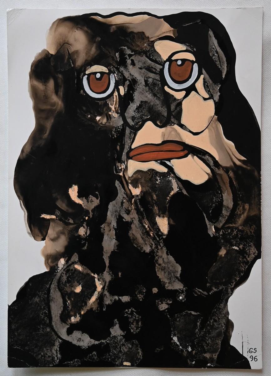 An untitled work by artist Gerard Sendrey (French, 1928-). Mixed media. Approx. 10" x 7".