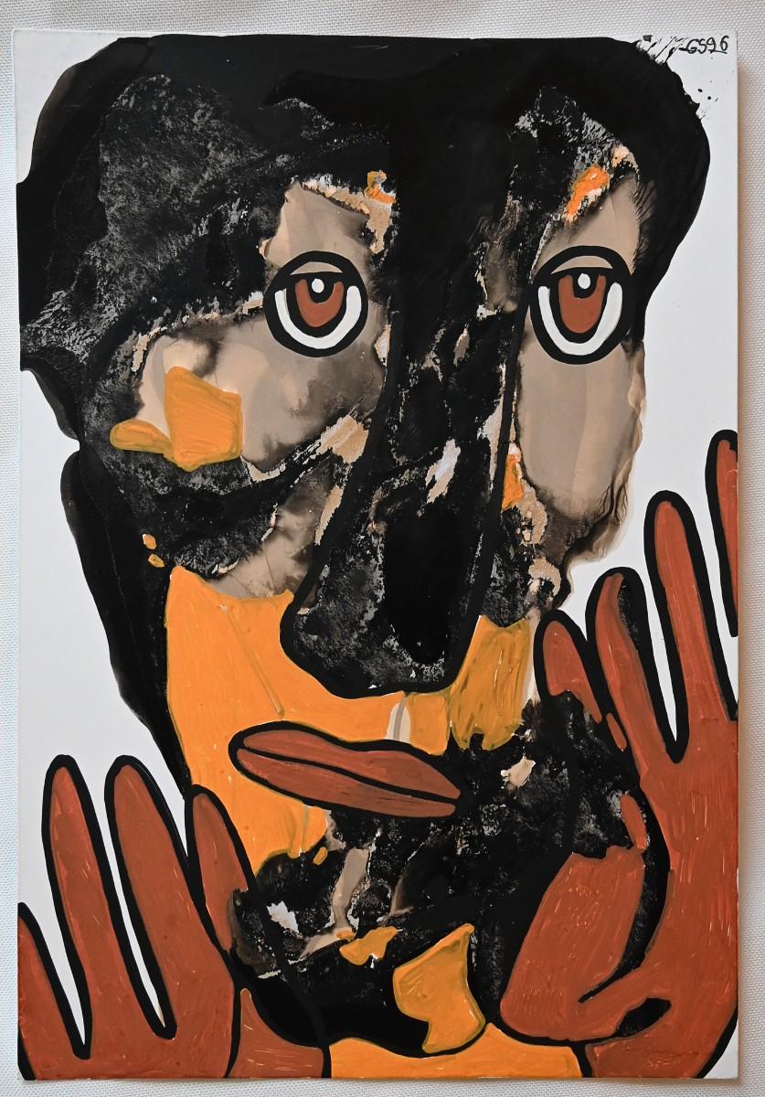 An untitled work by artist Gerard Sendrey (French, 1928-). Mixed media. Approx. 10" x 7".