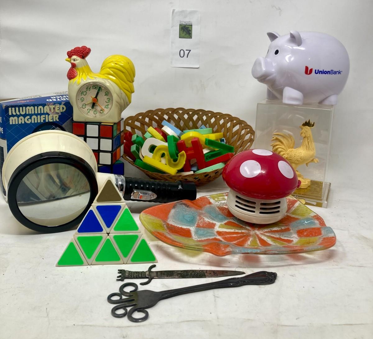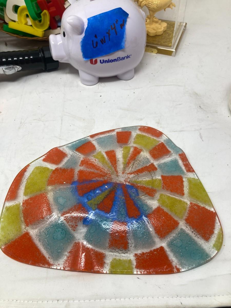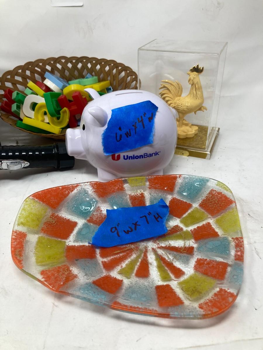 Piggy bank W" 6 x H 4", Colorful plate W 9" x H 7"