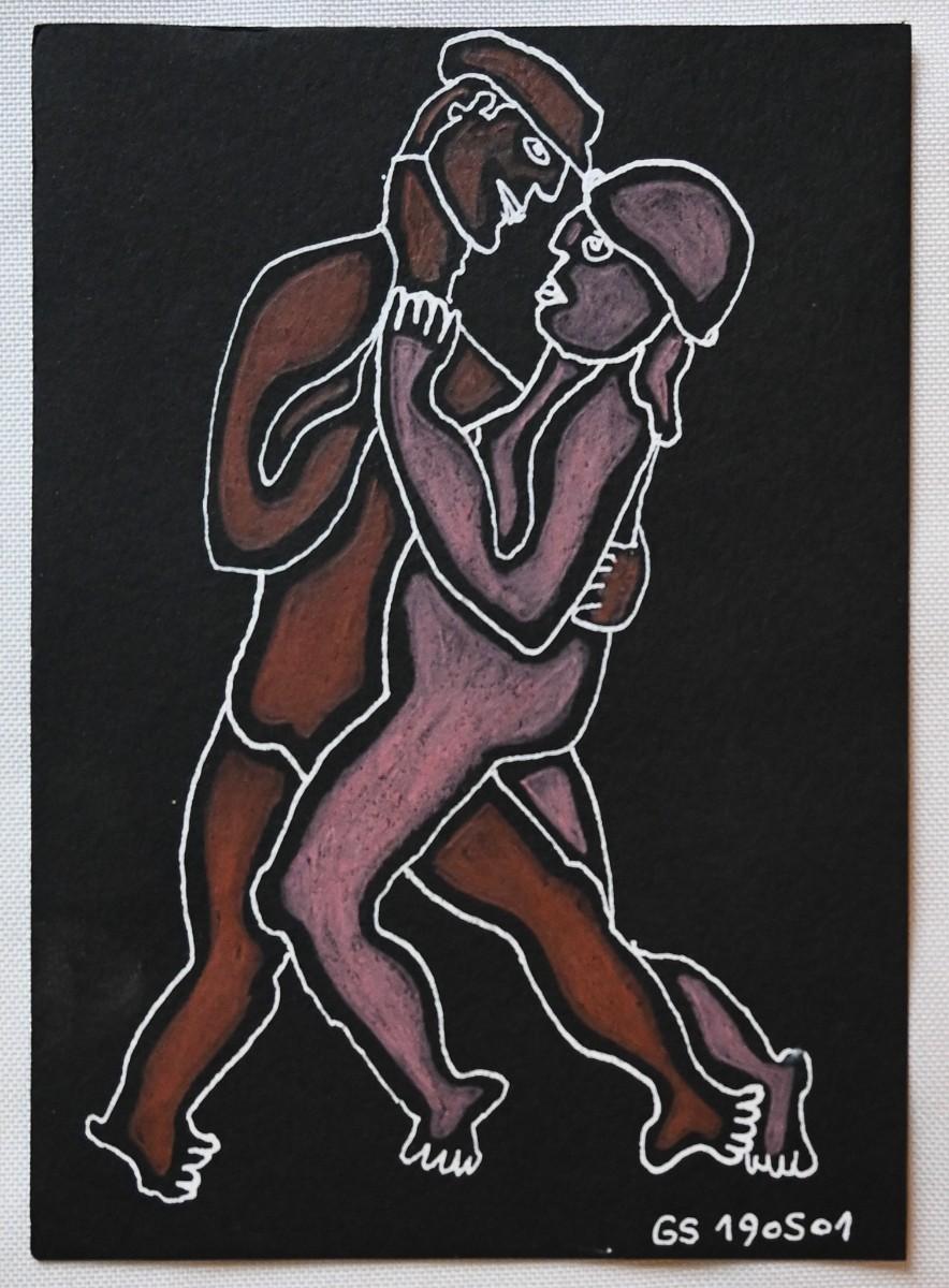 An untitled work by artist Gerard Sendrey (French, 1928-). Mixed media. Approx. 6" x 4".
