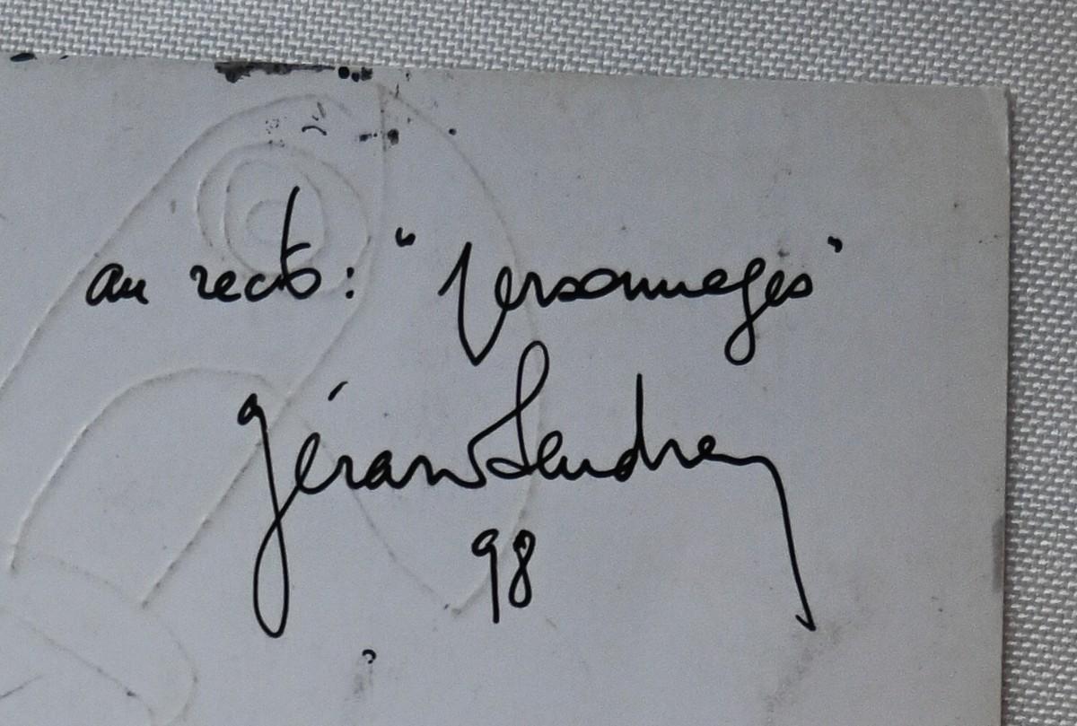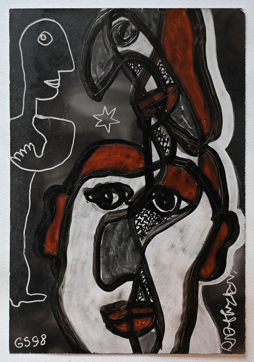 An untitled work by artist Gerard Sendrey (French, 1928-). Mixed media. Approx. 6" x 4".