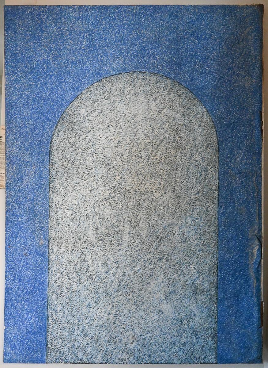 An untitled piece by Sachio Yamashita (Japanese-American, 1933-2009). Mixed media. Approx. 66" x 48". Please note, due to improper storage, this piece alone has acquired damage along the right side, as partially pictured. For its size, it will be available for local pick-up only.