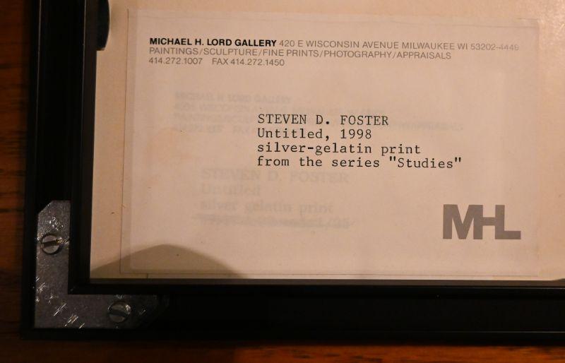 An untitled photograph (1998) from the series "Studies", by artist Steven D. Foster (American, 1945-). Silver-gelatin print. Approx. 10" x 10". Please note, listed dimensions includes frame. Also, the front pane of glass has cracked, and so may need to be replaced.