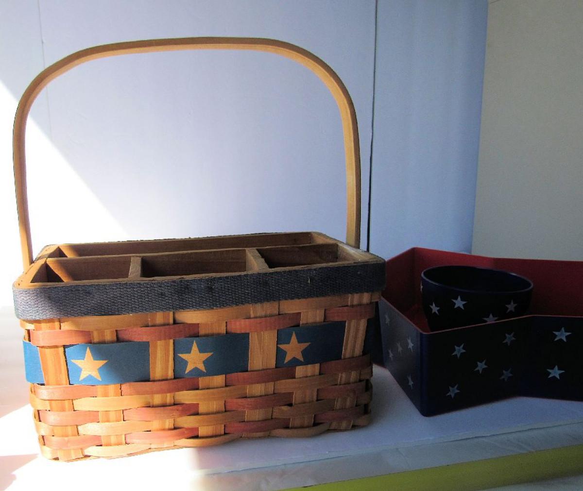 Nice shape, minor wear on the basket. Neat patriotic decor.