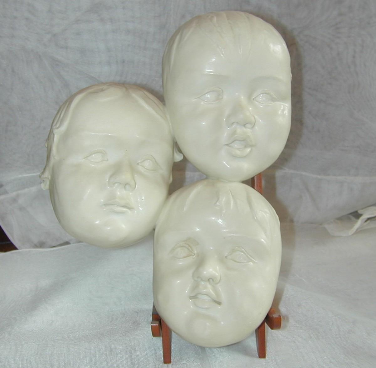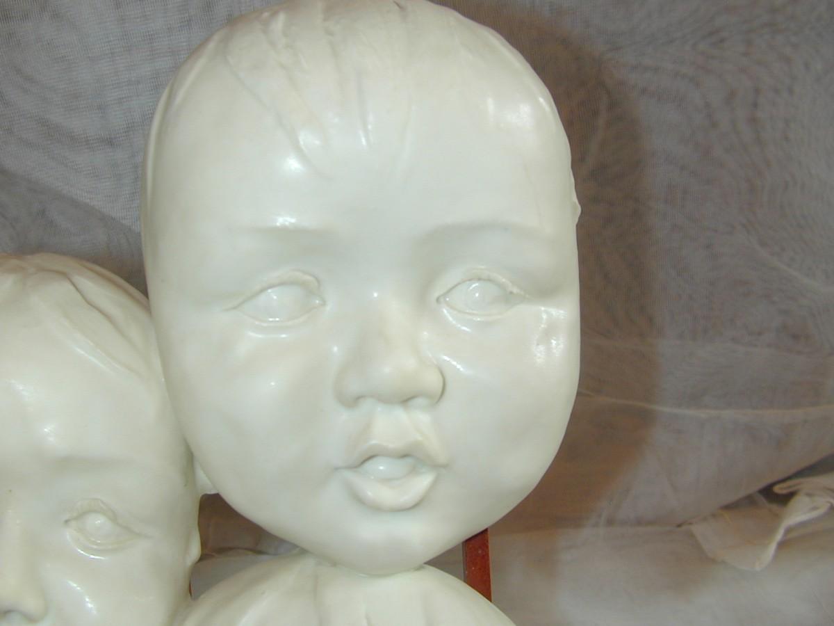 Unusual 3 Baby Child Faces Parian Sculpture - 10.5" tall