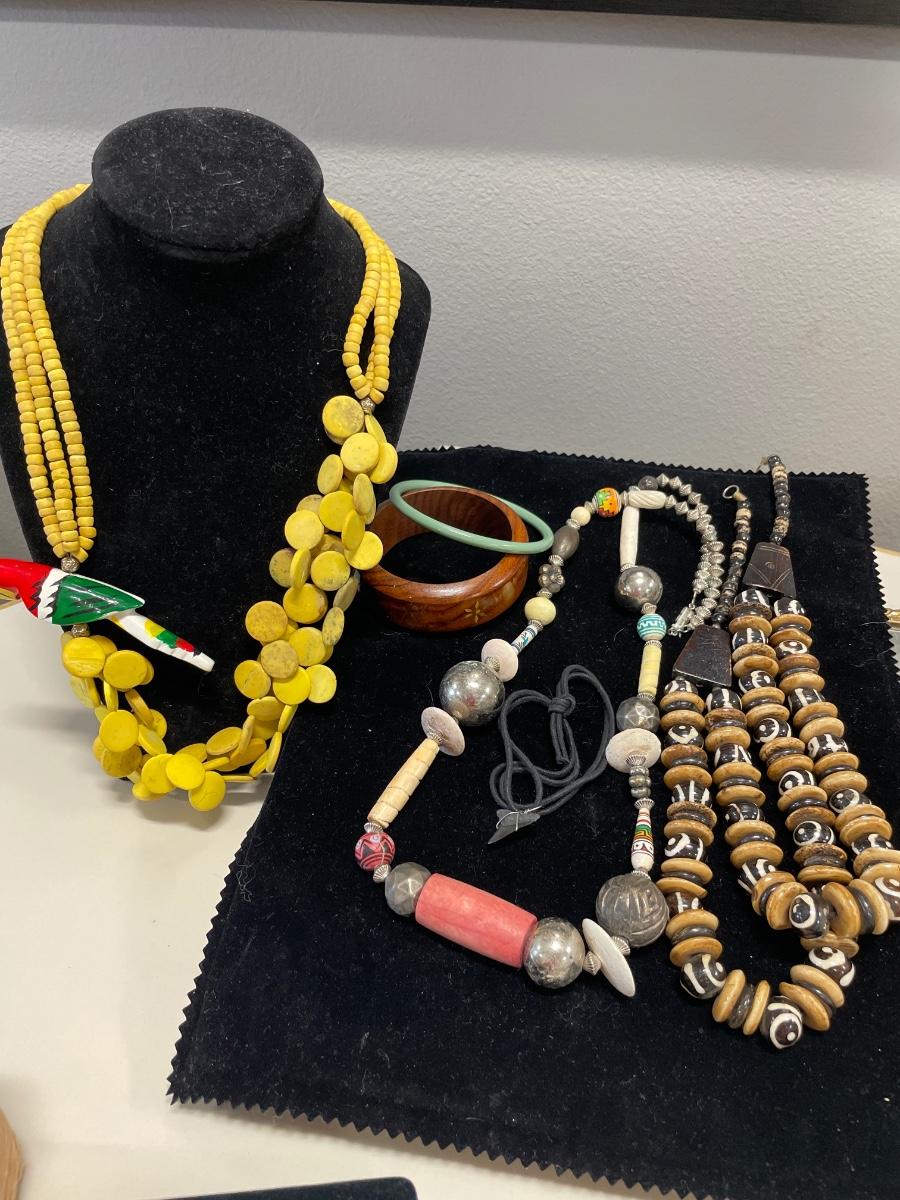 Includes shark tooth necklace & wood jewelry