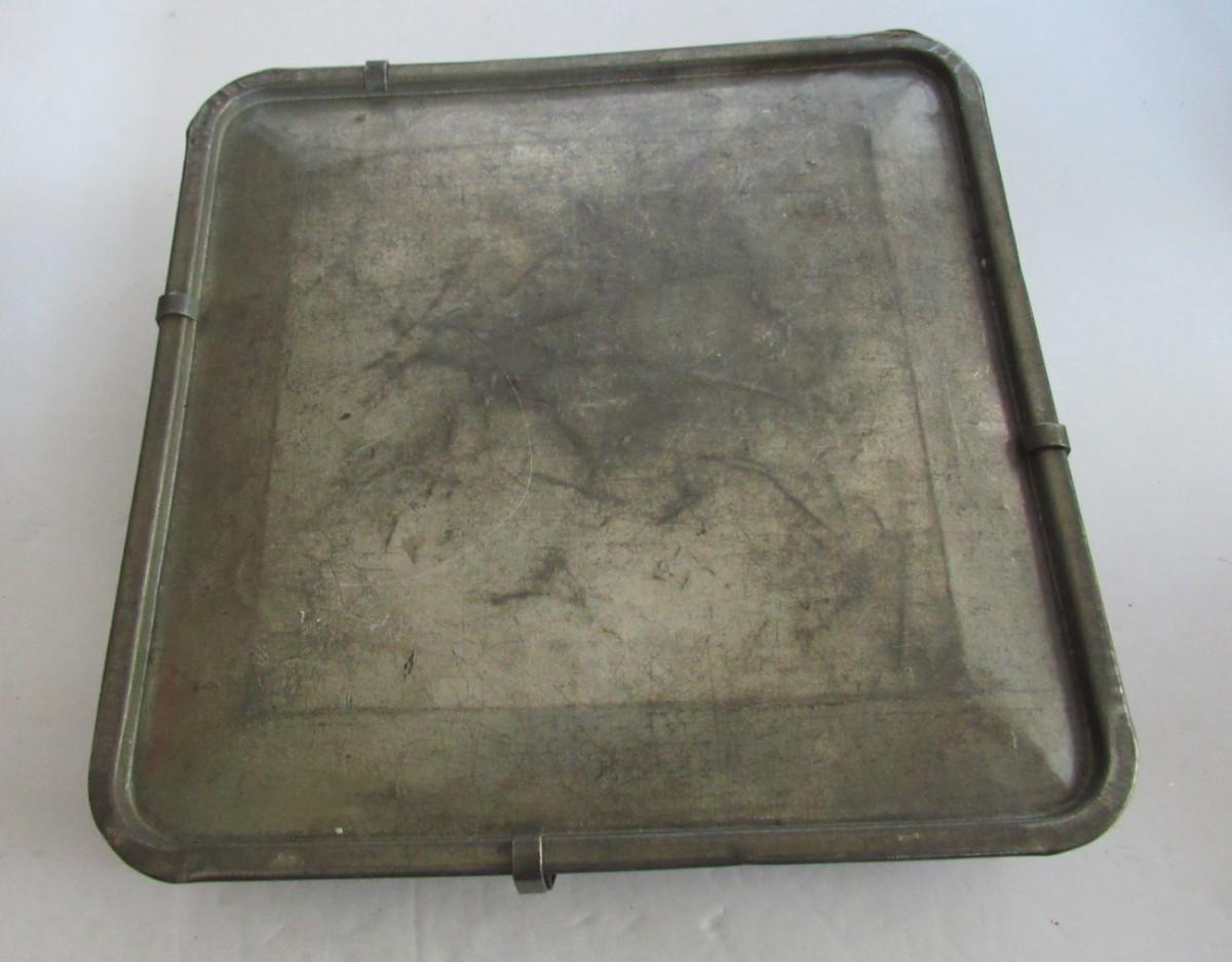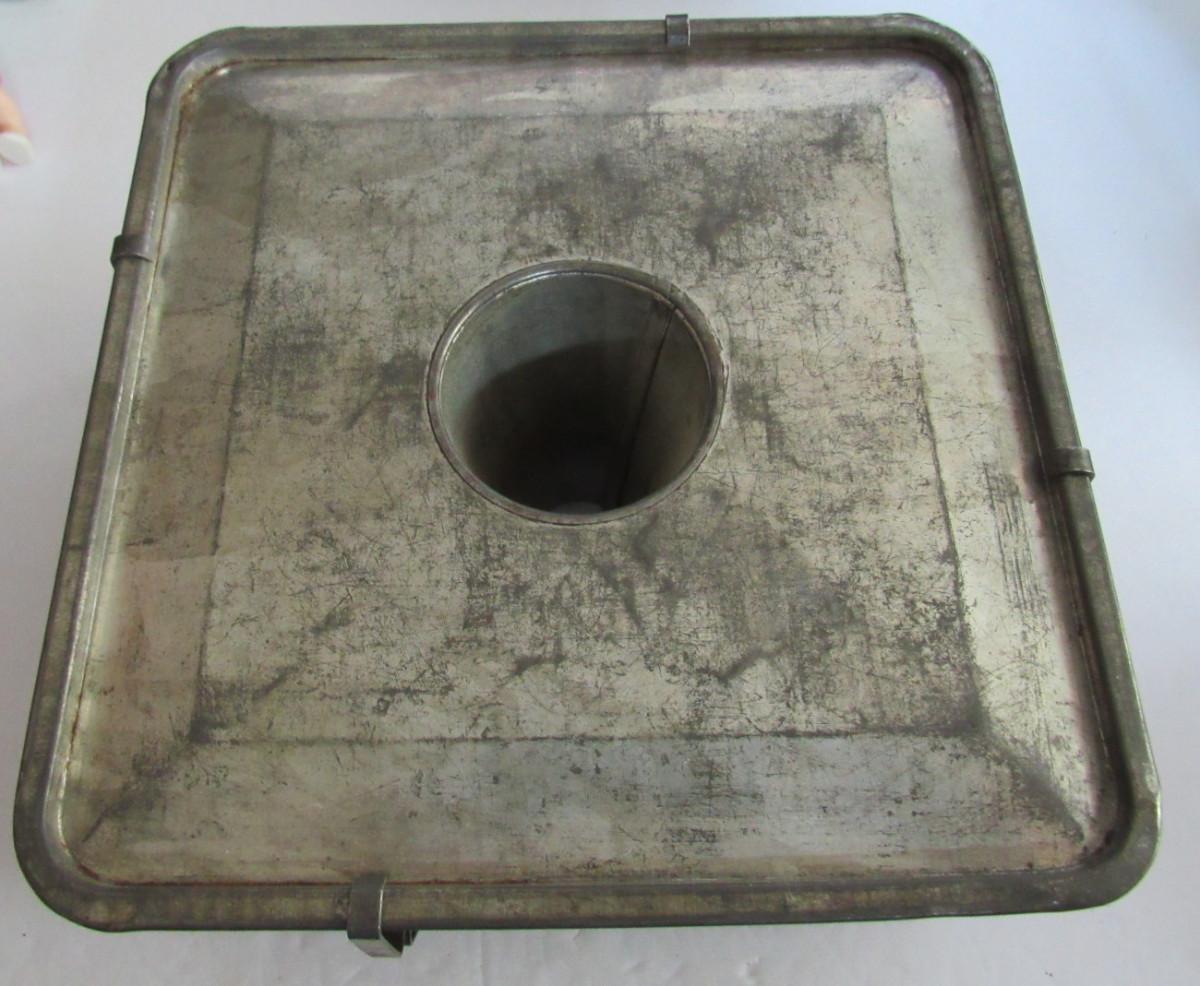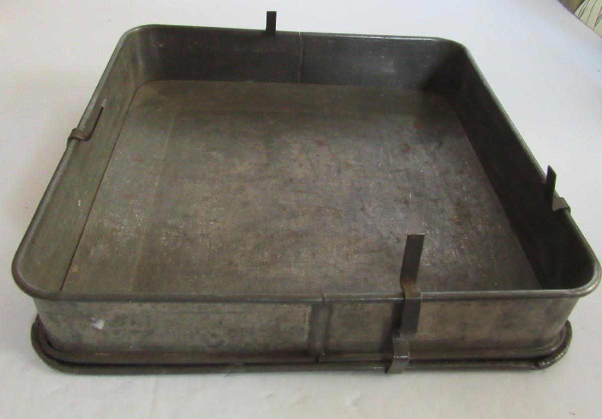 Great age patina. Age related wear. All clips are there but I have no idea how they go on the tin. Nice old piece. Shipping is available at actual shipping cost plus $5.00 handling fee per box for supplies/labor. See our terms for details. All sales are final. Condition notes may not be all inclusive, we may miss some issues as most vintage items are not in mint condition and have some degree of wear, paint loss, etc, but we always try to note obvious damage.