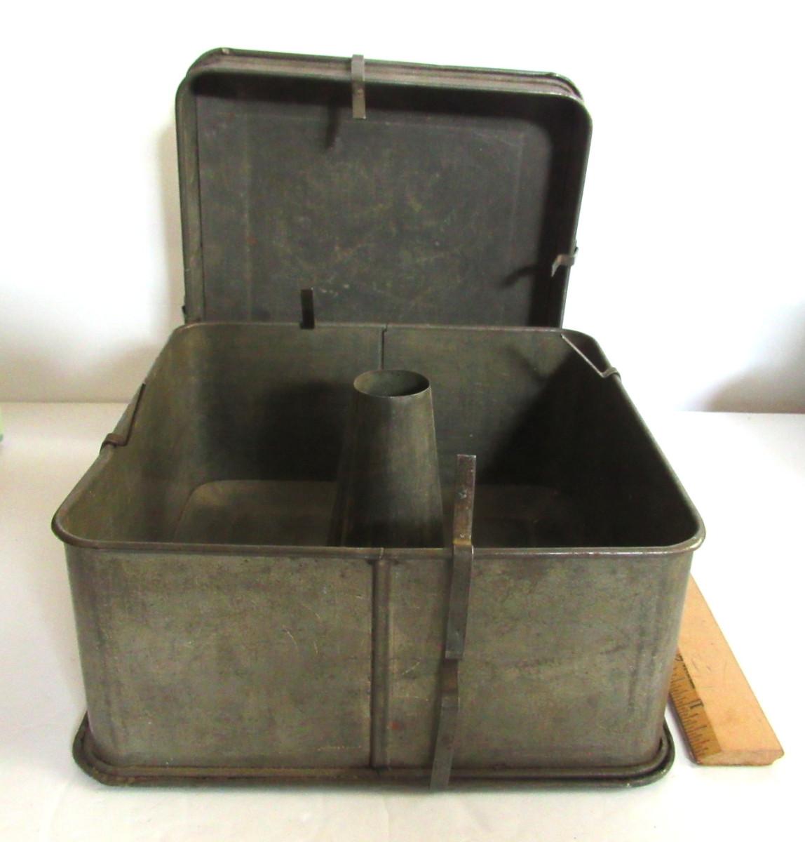 Unusual Antique Tin Cake Mold With Original Top and All 8 Clips