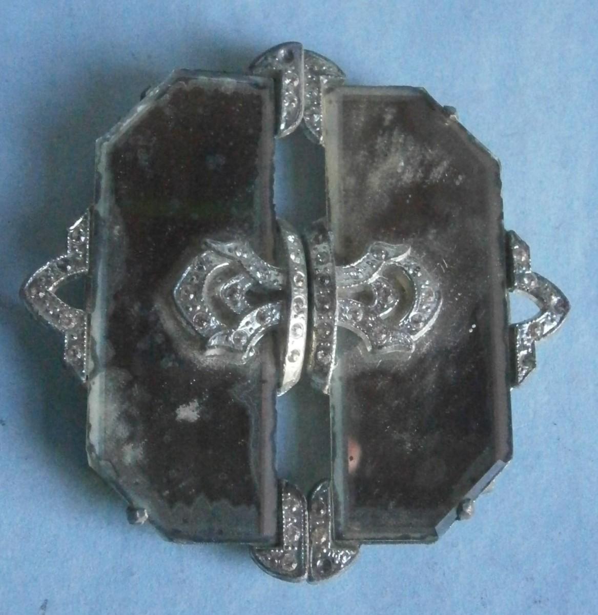Unusual Art Deco Glass & Rhinestone Belt Buckle