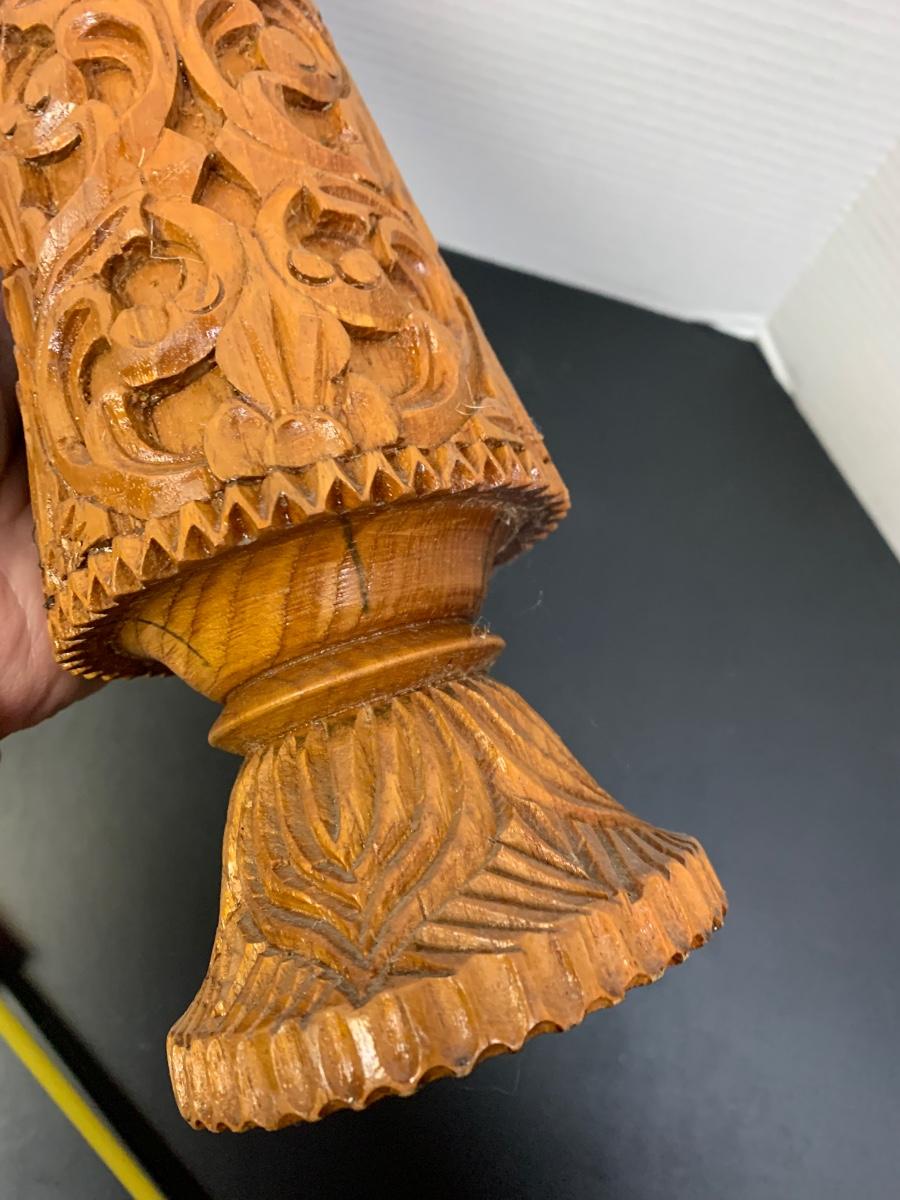 Unusual Handmade Wood Carved Candle Base?
