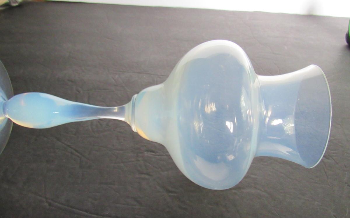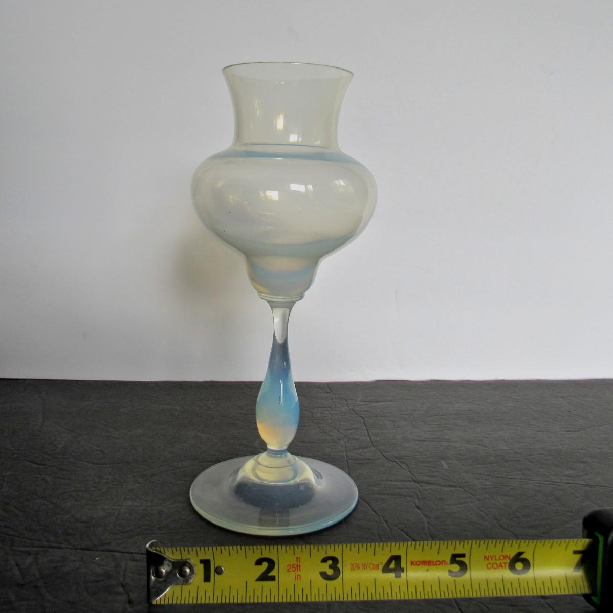 Beautiful silky glass, lovely opalescence, great lines. A wonderful piece. I see no damage or maker's marks. Shipping is available at actual shipping cost plus $5.00 handling fee per box for supplies/labor. See our terms for details. All sales are final. Condition notes may not be all inclusive, we may miss some issues as most vintage items are not in mint condition and have some degree of wear, paint loss, etc, but we always try to note obvious damage.