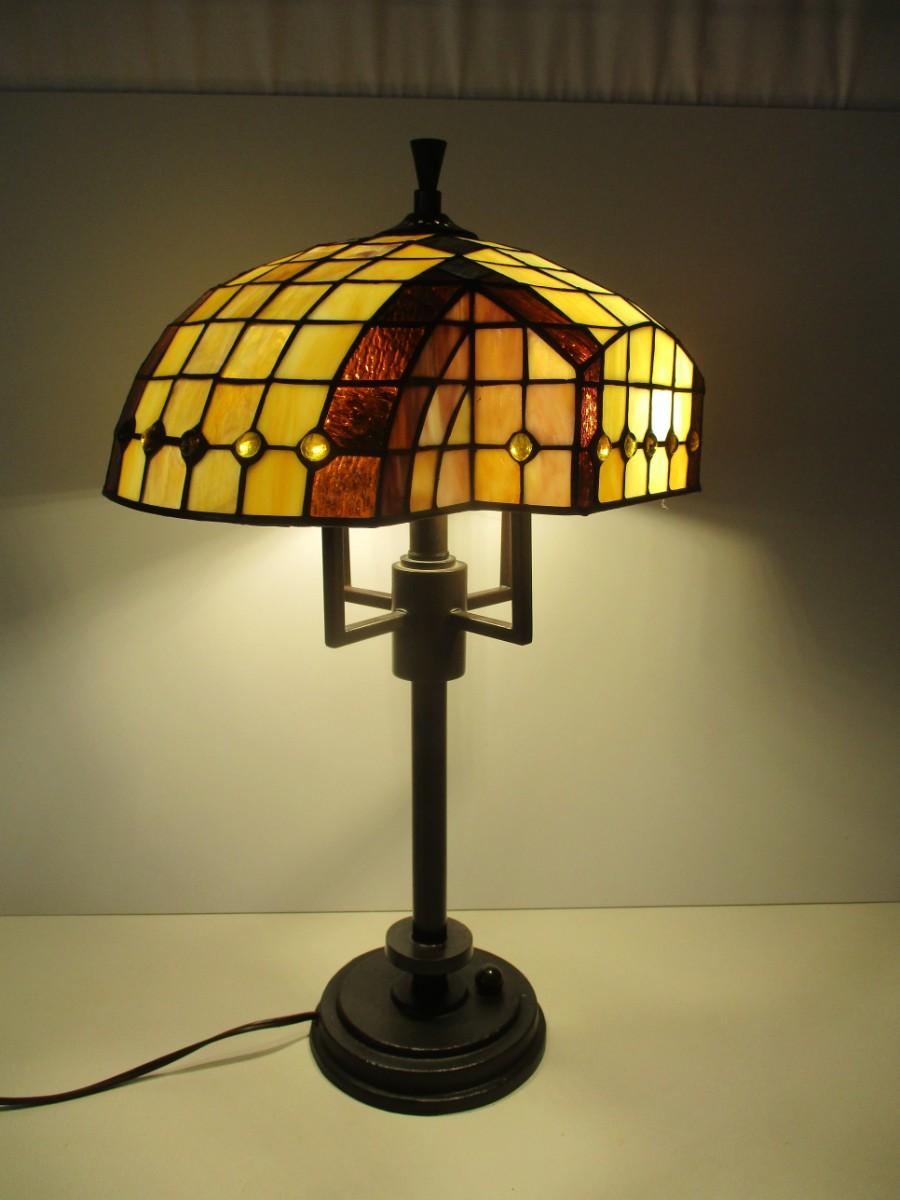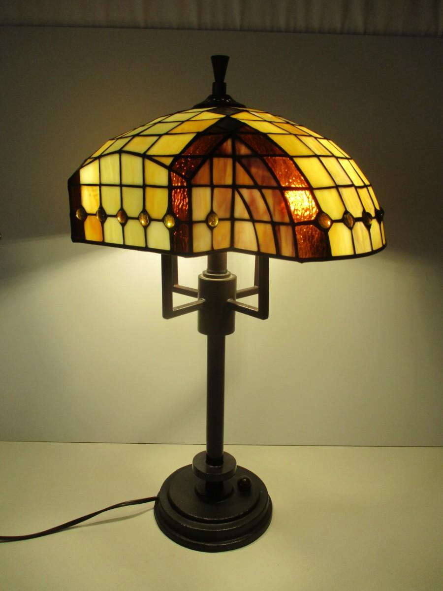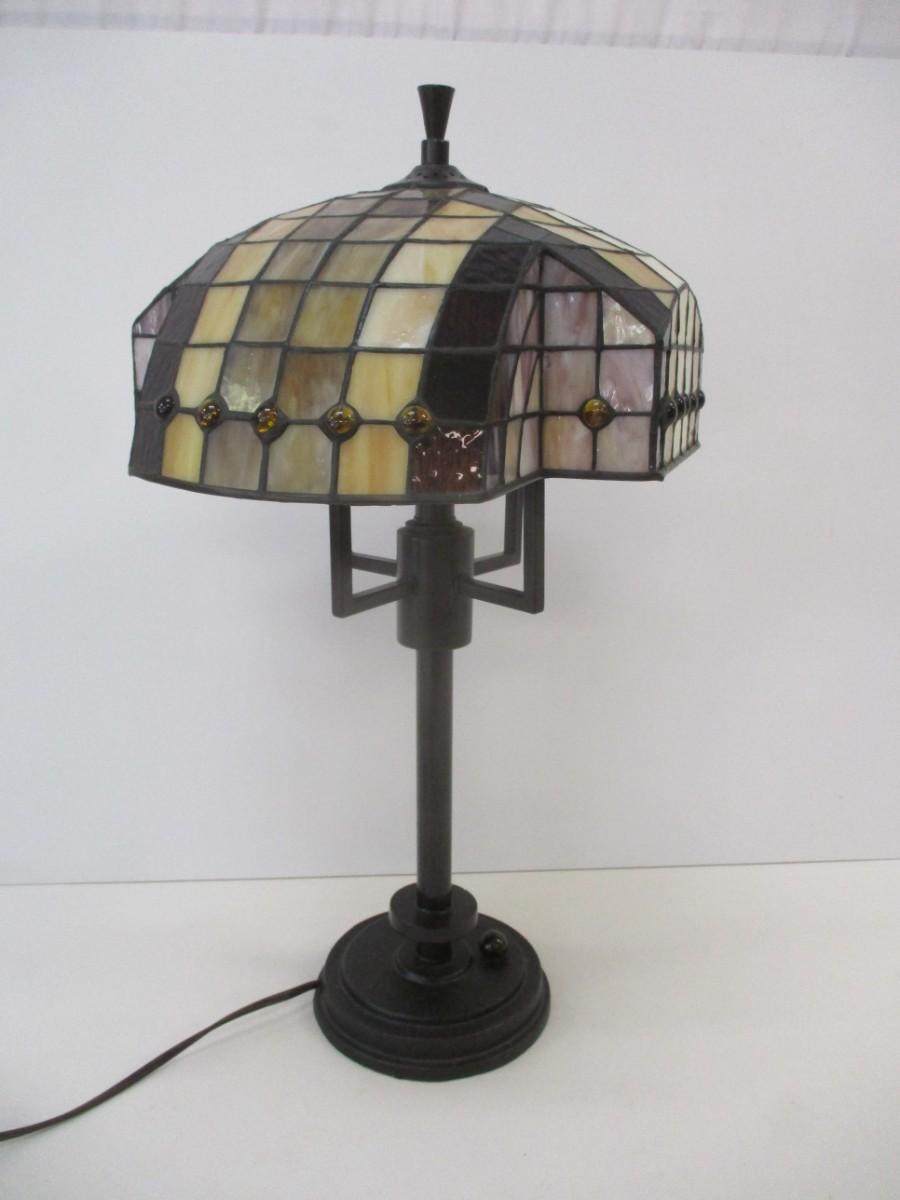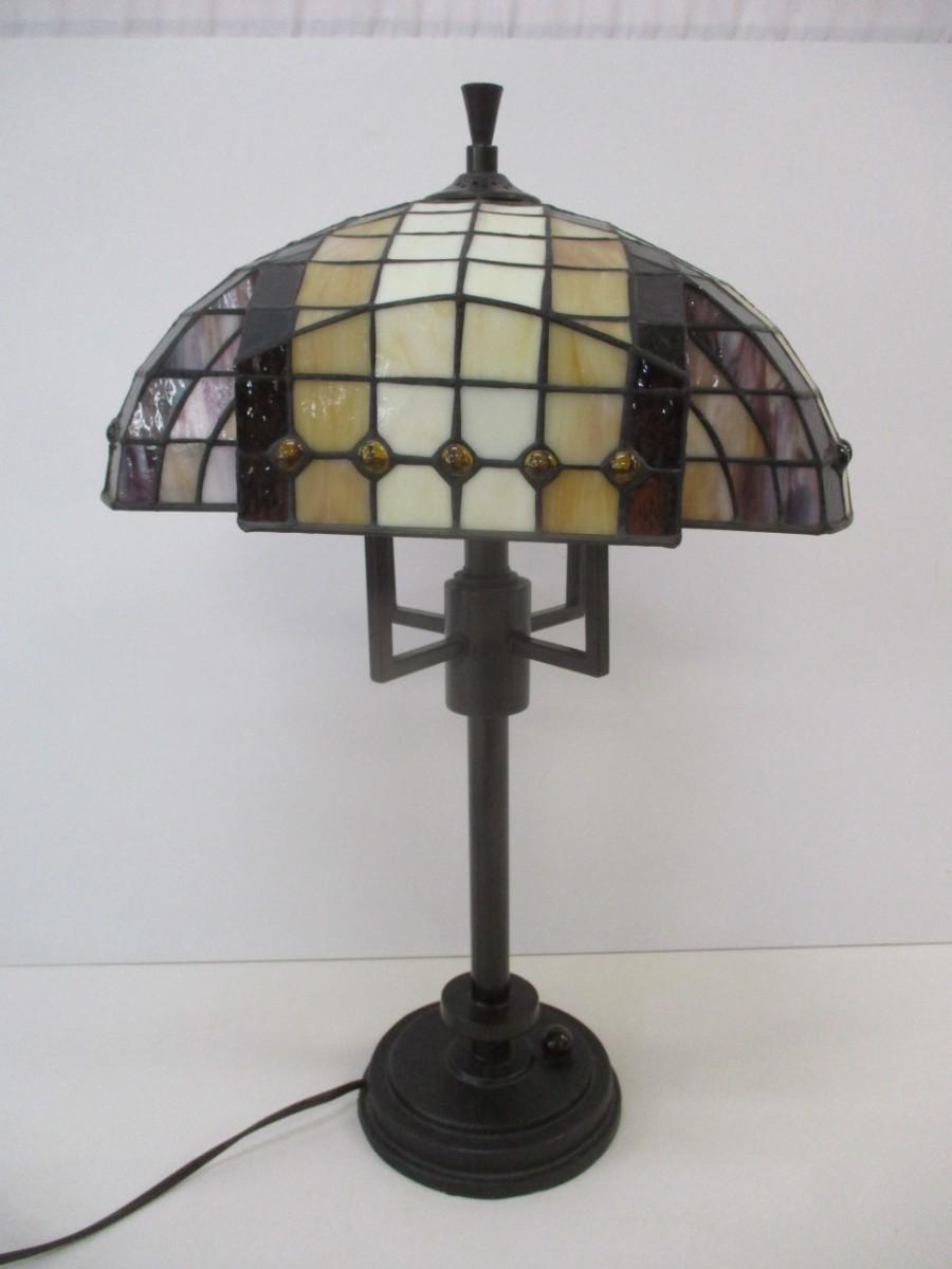 Unusual Shaped Tiffany Style Stained Glass Table Lamp