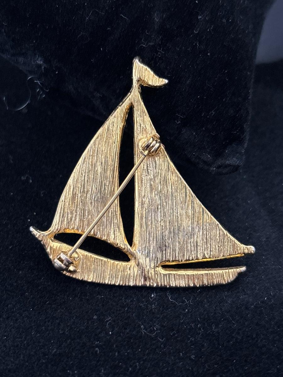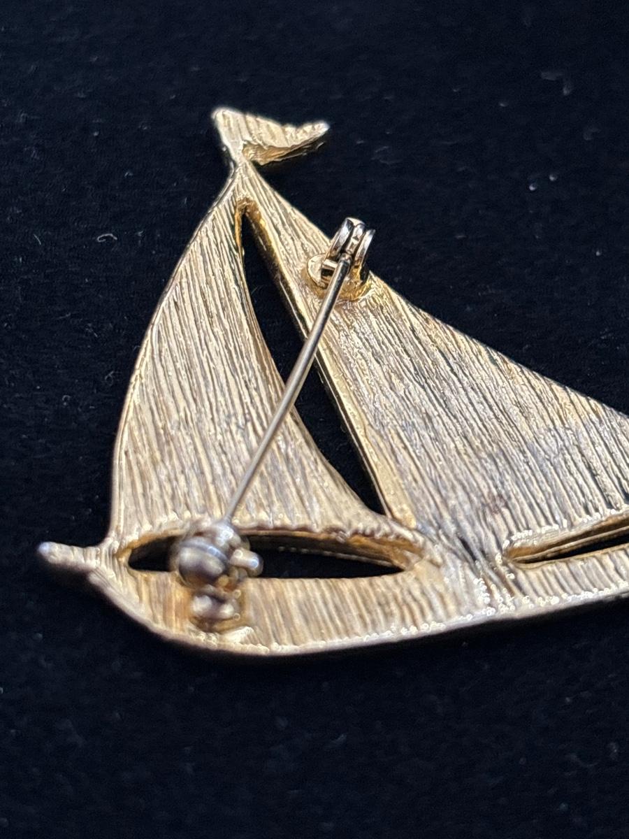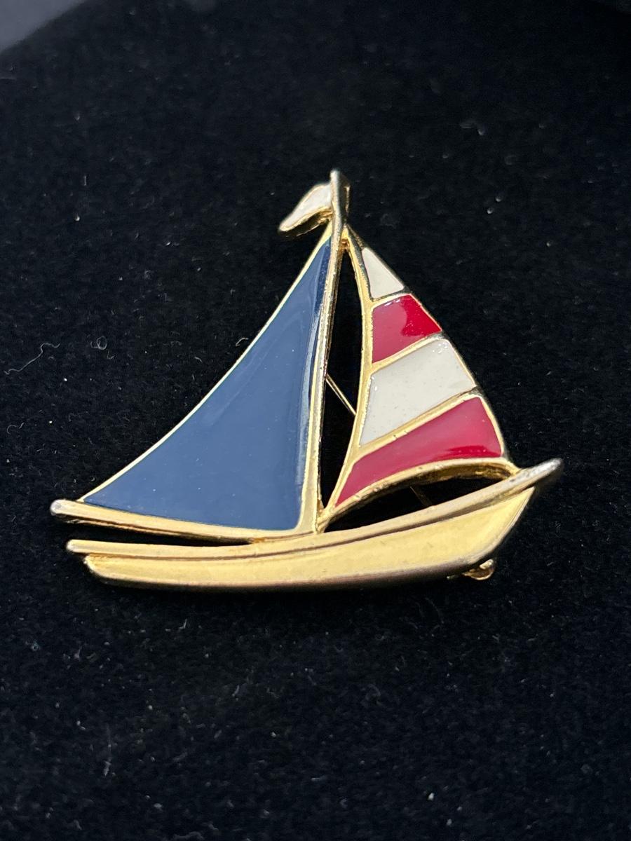 Unusual Vintage Red White Blue Enameled Sail Boat Brooch