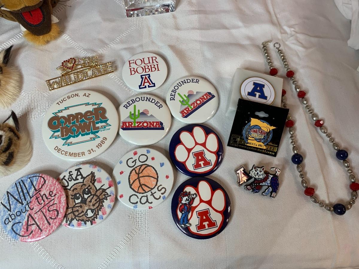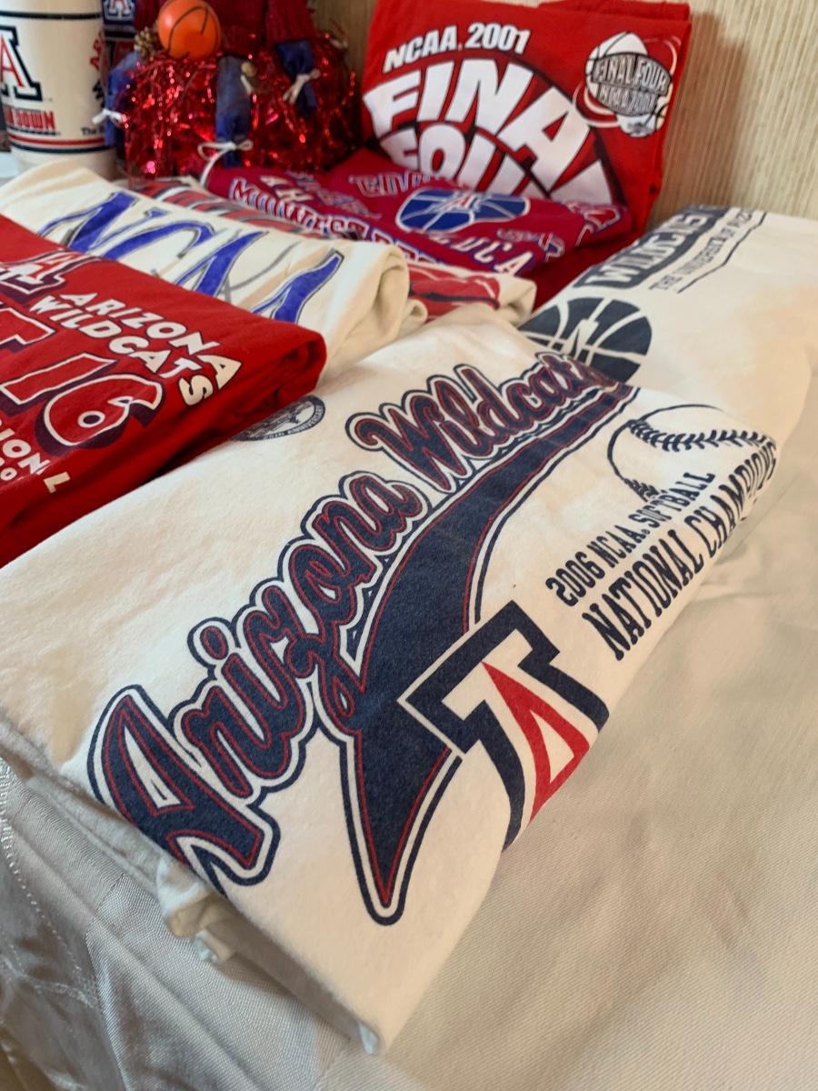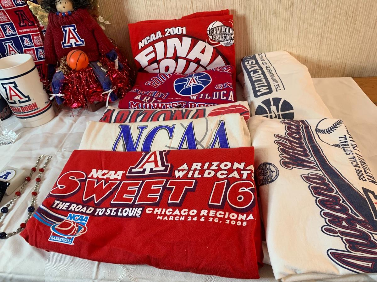 Placemats, Cups, Pins, Jewelry, Shirts (of all sizes), UofA Angel, and more Wildcat Memorabilia.