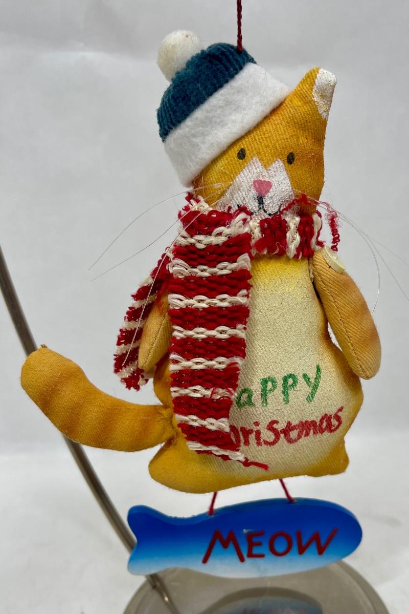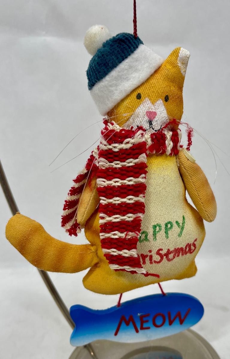 Fabric orange tabby cat with hat and scarf. Approx. 5" tall.