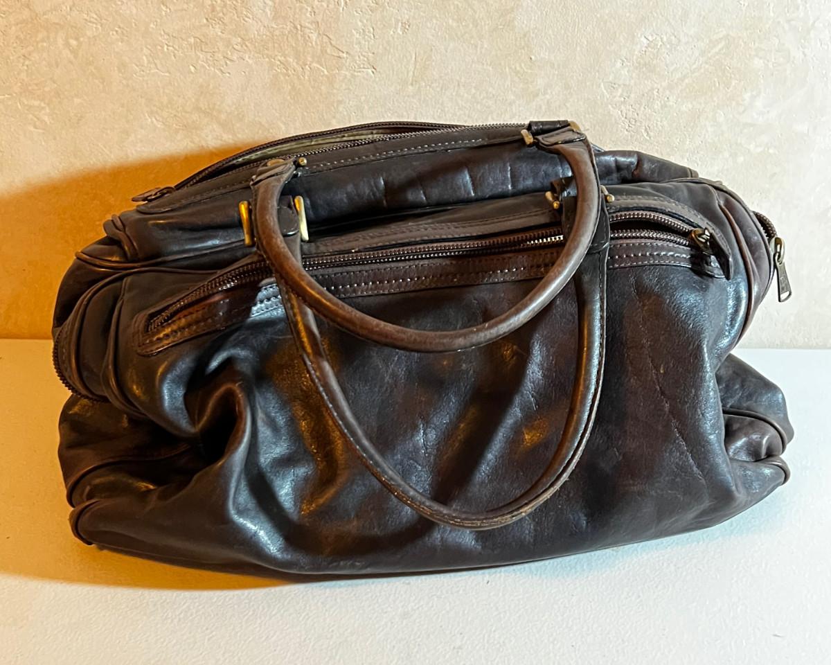 UP -- AWESOME Vintage Leather Duffel from Italy