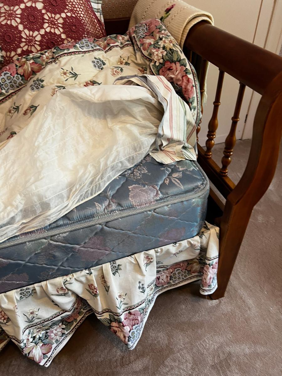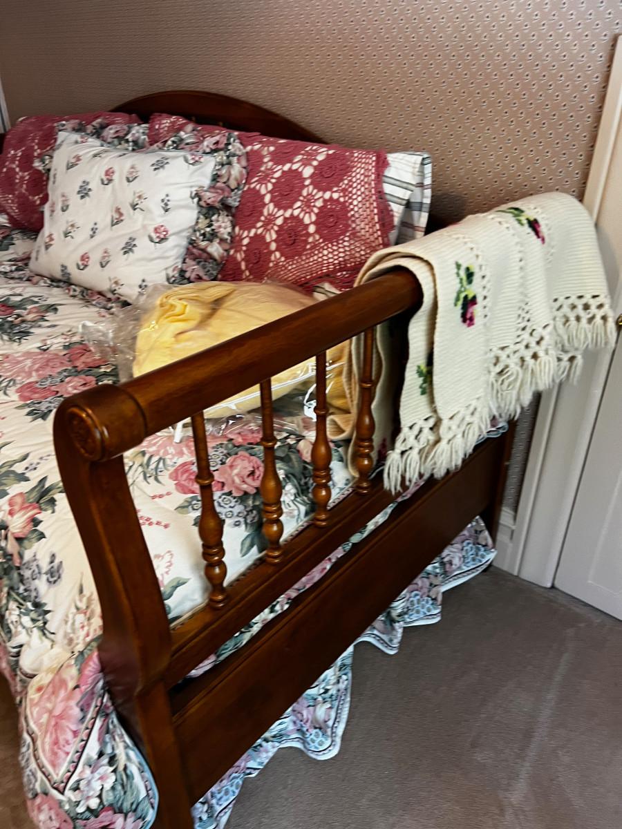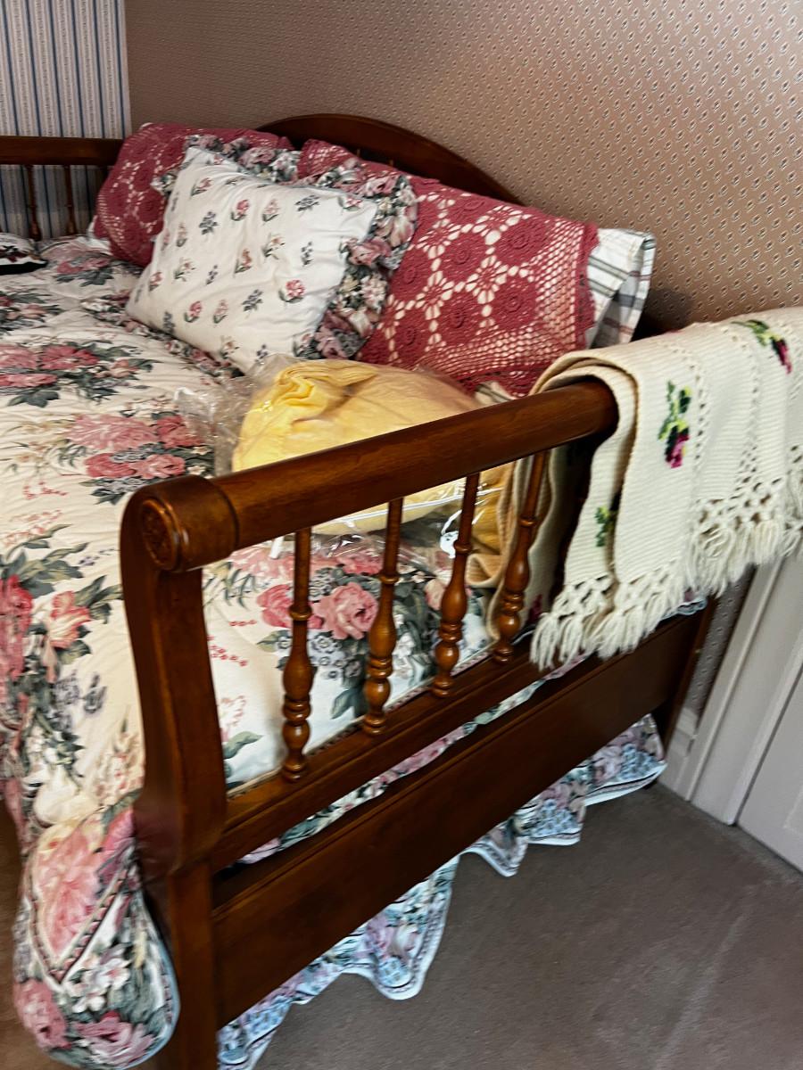 Good Condition. Maple Wood, probably. THIS ITEM IS LOCATED UPSTAIRS IN THE HOME. YOU MUST BRING 2 STRONG ADULT TO MOVE DOWN THE STAIRS BY YOURSELF. WE CAN NOT HELP!