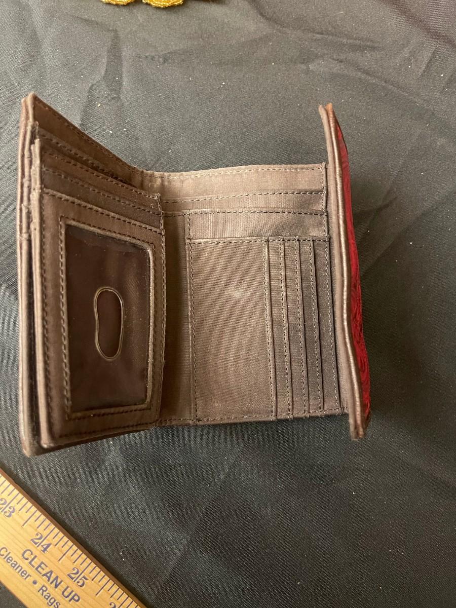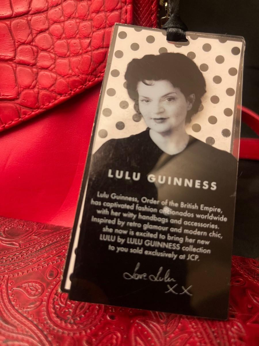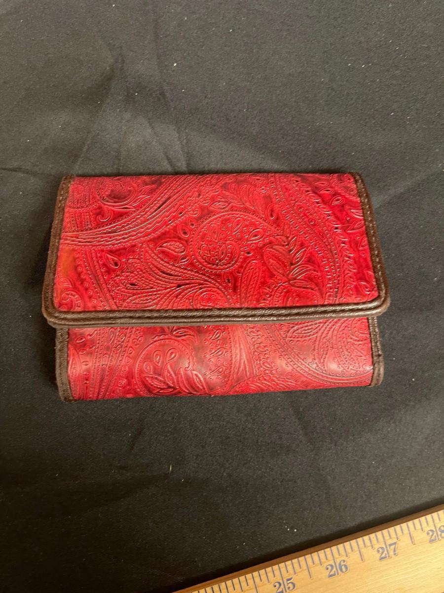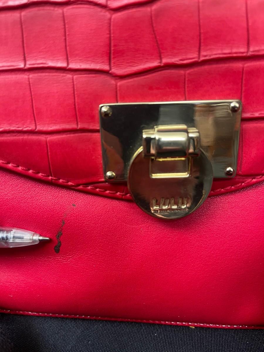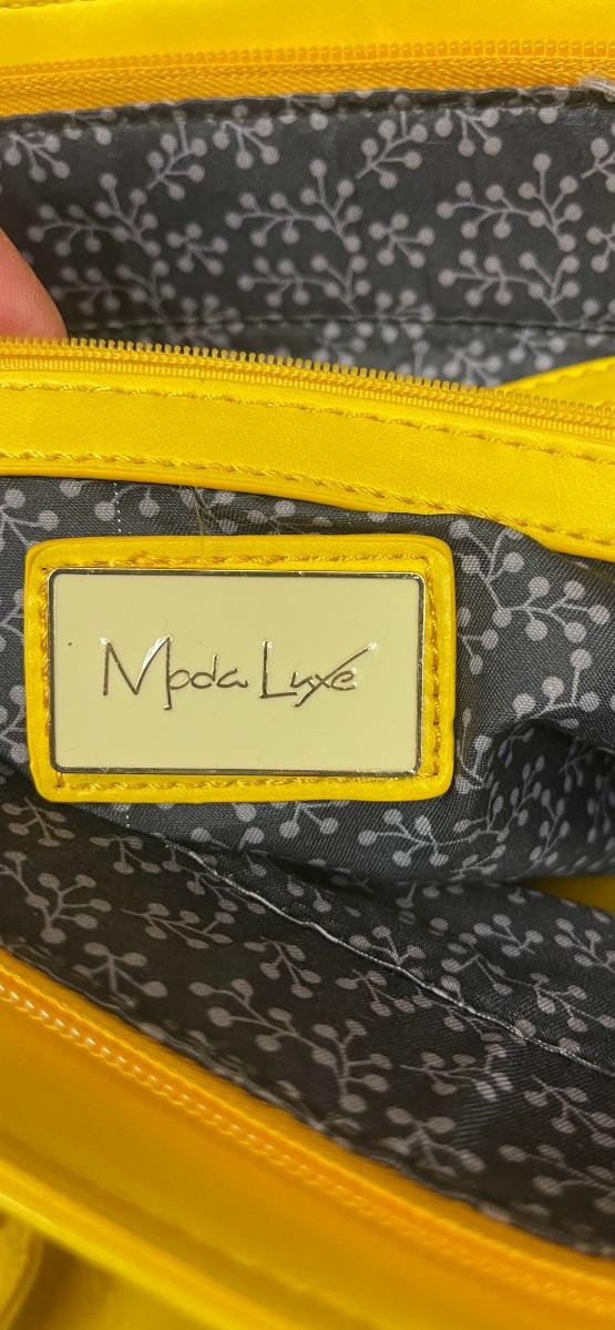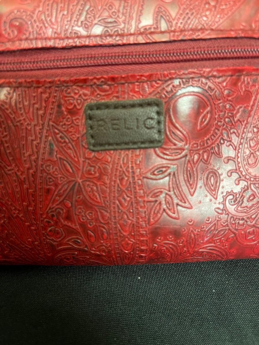 Purses / Handbags:9 La Regale, Whiting & Davis, Lulu, Relic, Mona Luxe, et al Lot of 9 assorted handbags. La Regale vintage gold beaded purse; Red Lulu purse, small ink spot as shown; Relic tooled wallet- red & brown; Purple cosmetic bag; burgundy and black leather like fanny pack; Moda Luxe yellow tote w/ long strap, new; Vintage Whiting & Davis, white mesh handbag; Patty white leather shoulder bag, Taupe purse w/ gold accent hardware, has shoulder strap;