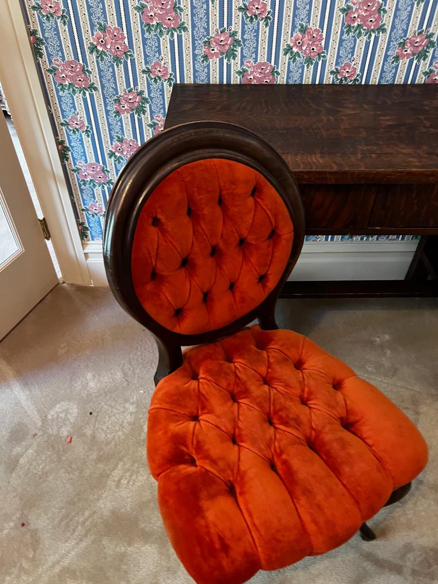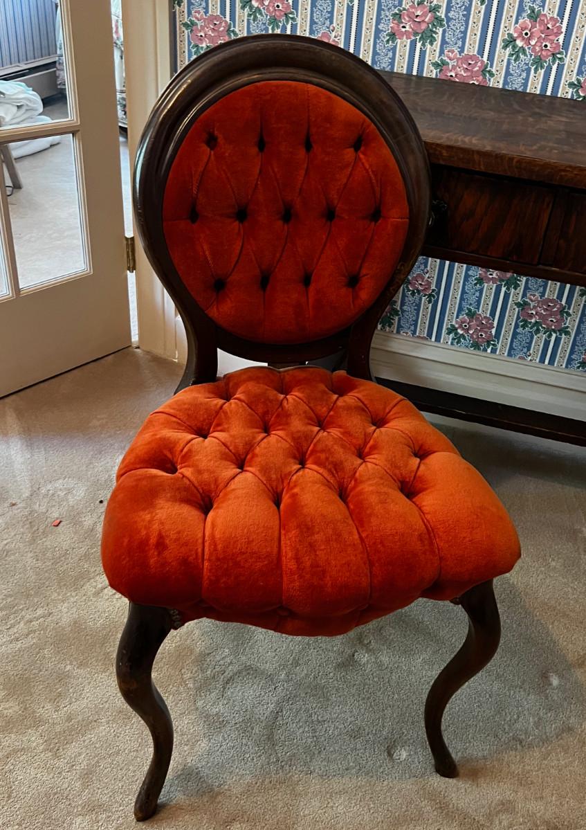 UP -- French Proventil Chair Orange Fabric TUFTED!