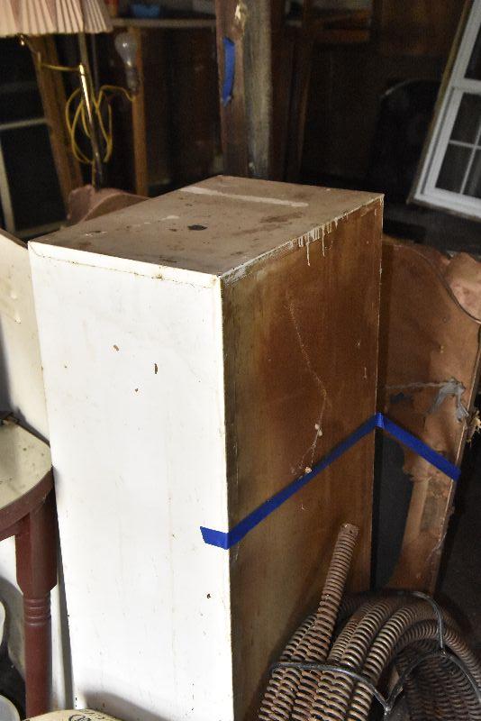 This lot is in the second story of the garage and must be retreived from there. Things are quite dirty and there was evidence of mouse droppings. Please clean all items before bringing into your home.