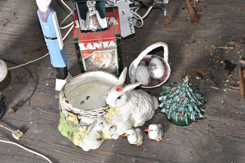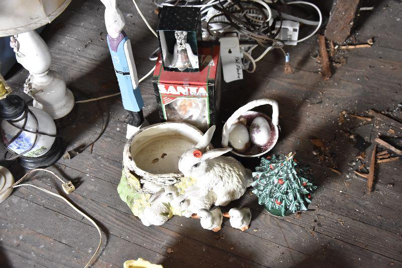 This lot is in the second story of the garage and must be retreived from there. Things are quite dirty and there was evidence of mouse droppings. Please clean all items before bringing into your home.