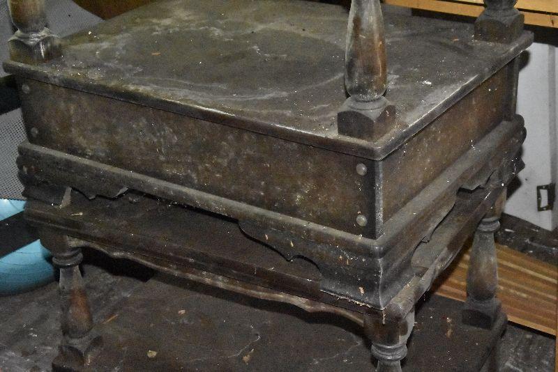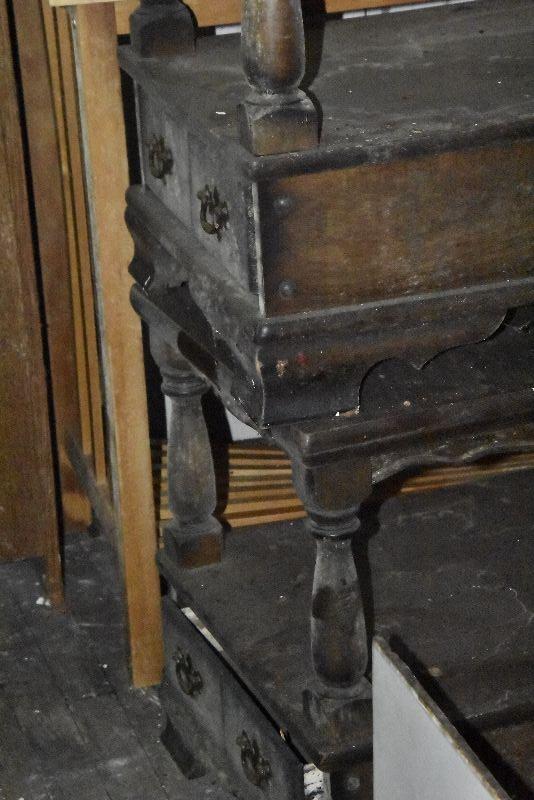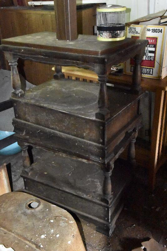 This lot is in the second story of the garage and must be retreived from there. Things are quite dirty and there was evidence of mouse droppings. Please clean all items before bringing into your home.