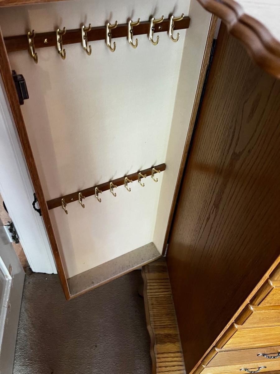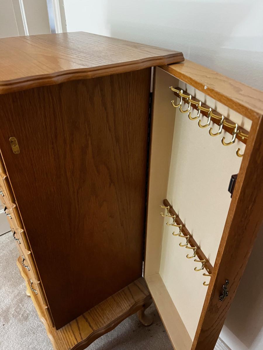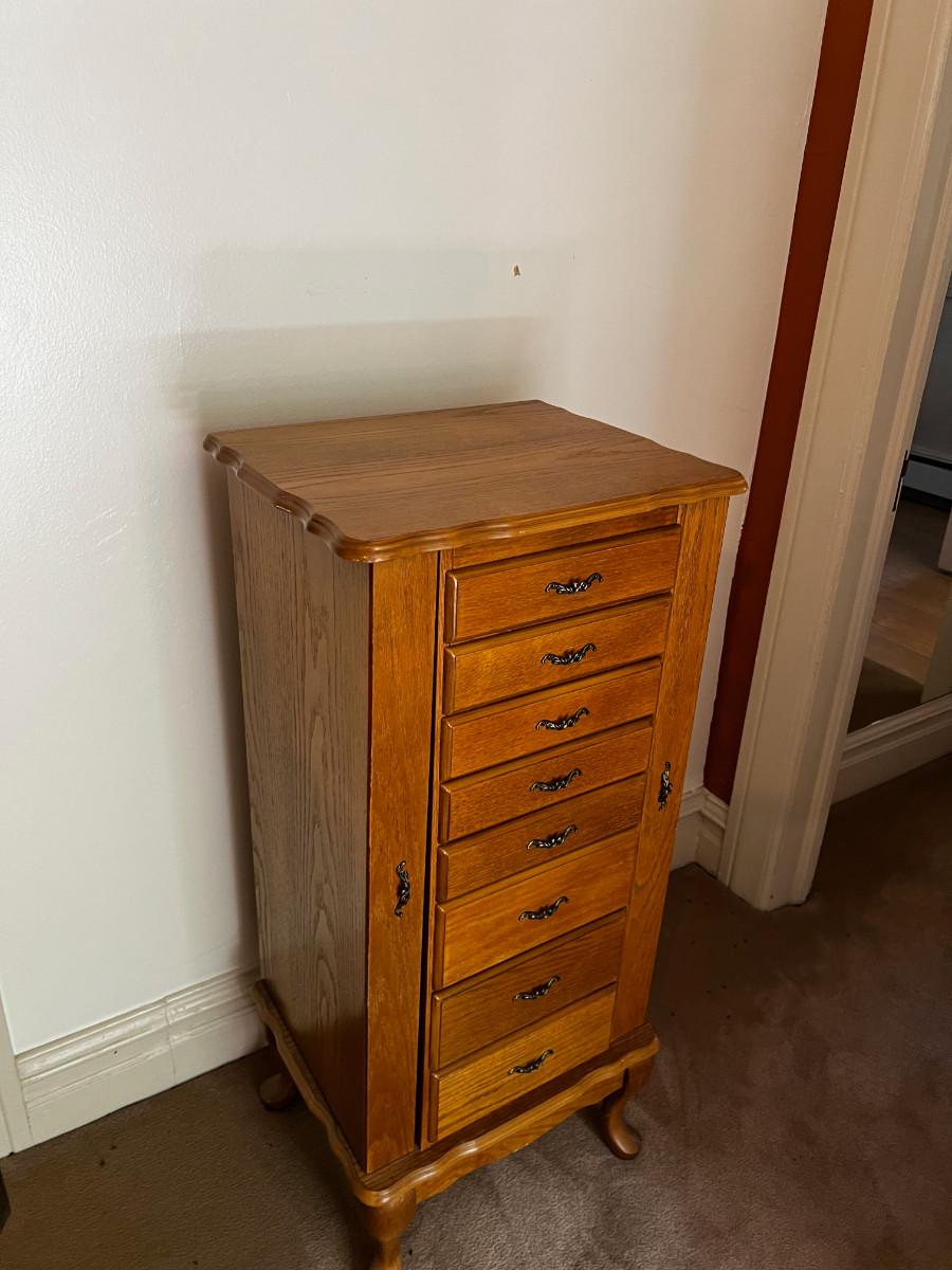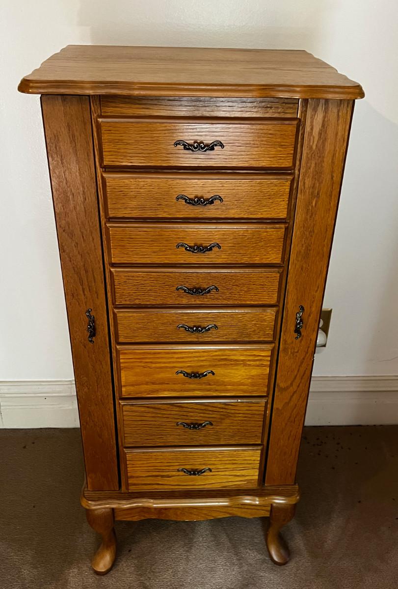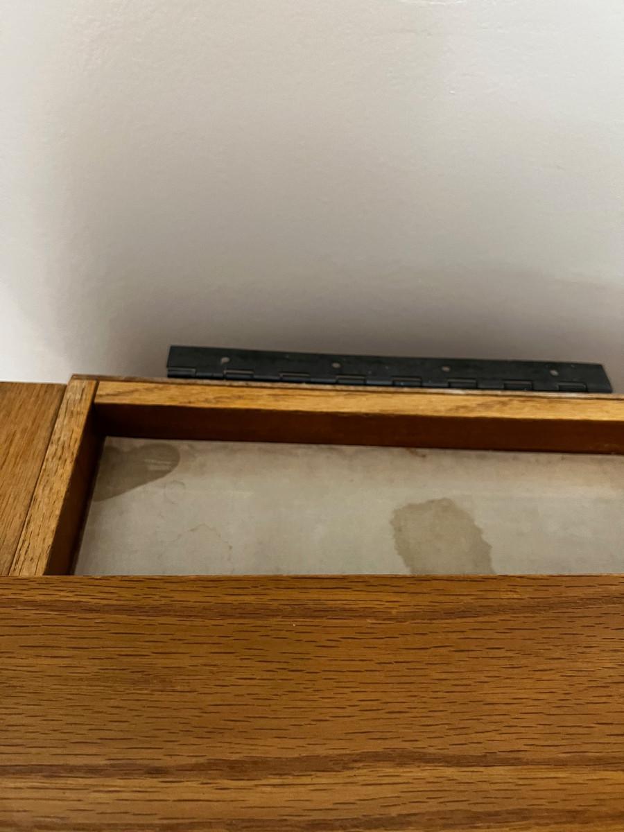 Measures: 18"X 15" x 41' Hinge needs repaired! Used. Good Condition otherwise. THIS ITEM IS LOCATED UPSTAIRS IN THE HOME. YOU MUST BRING 2 STRONG ADULT TO MOVE DOWN THE STAIRS BY YOURSELF. WE CAN NOT
