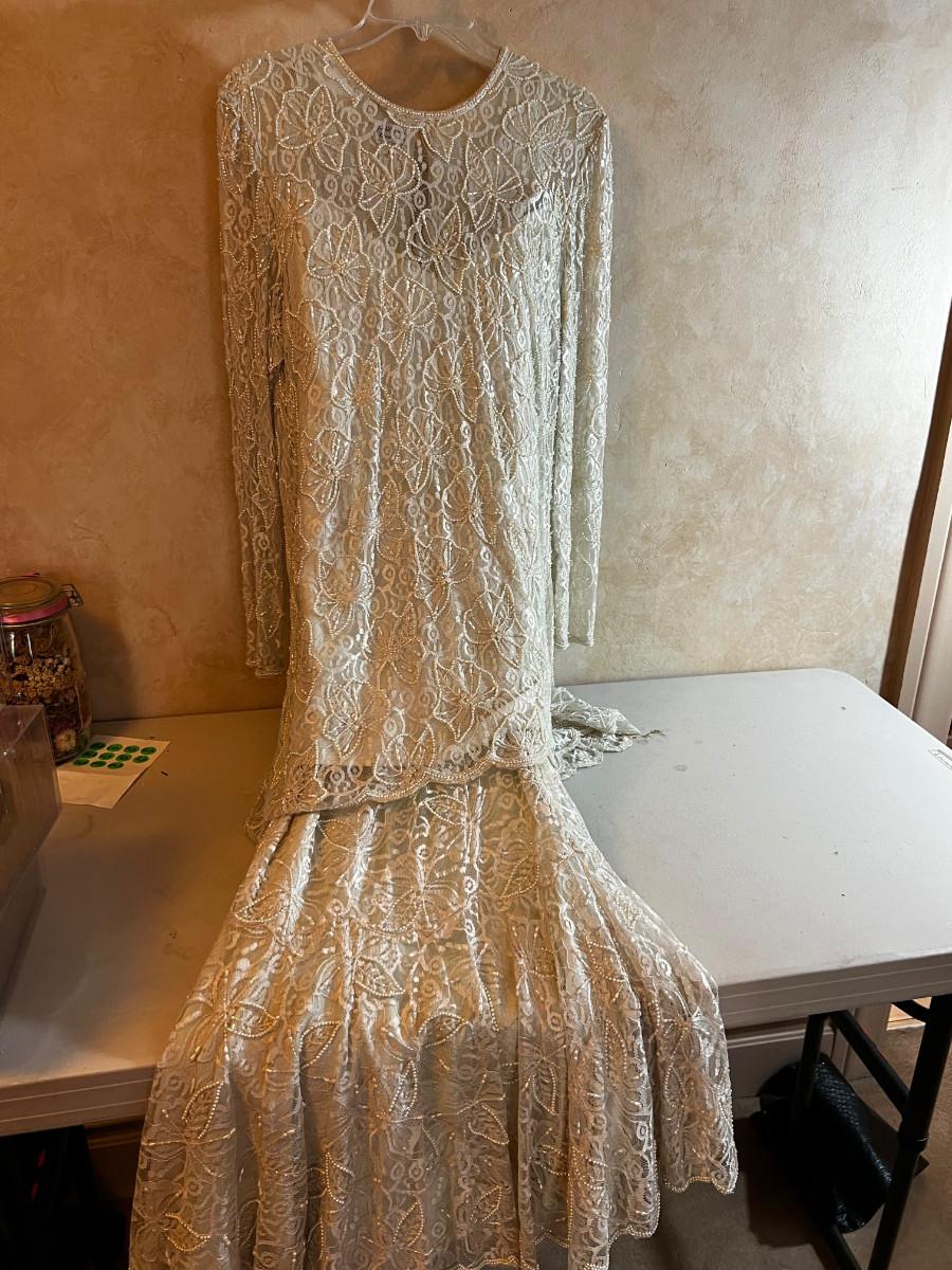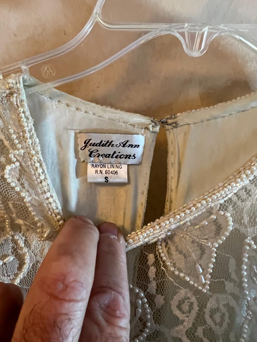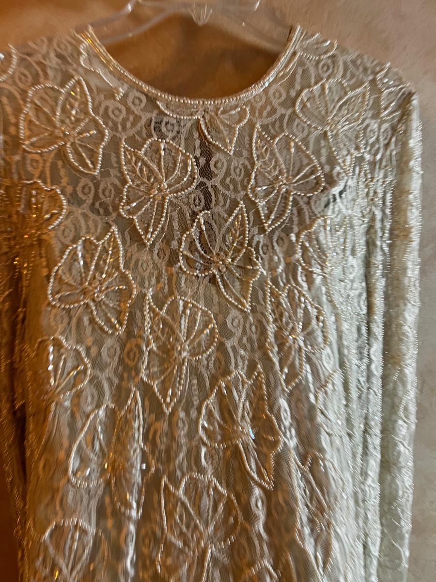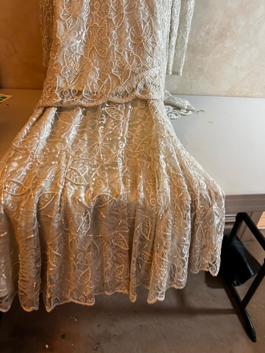 UP -- Judith Ann Creations. White BEADED Top and Long Skirt.