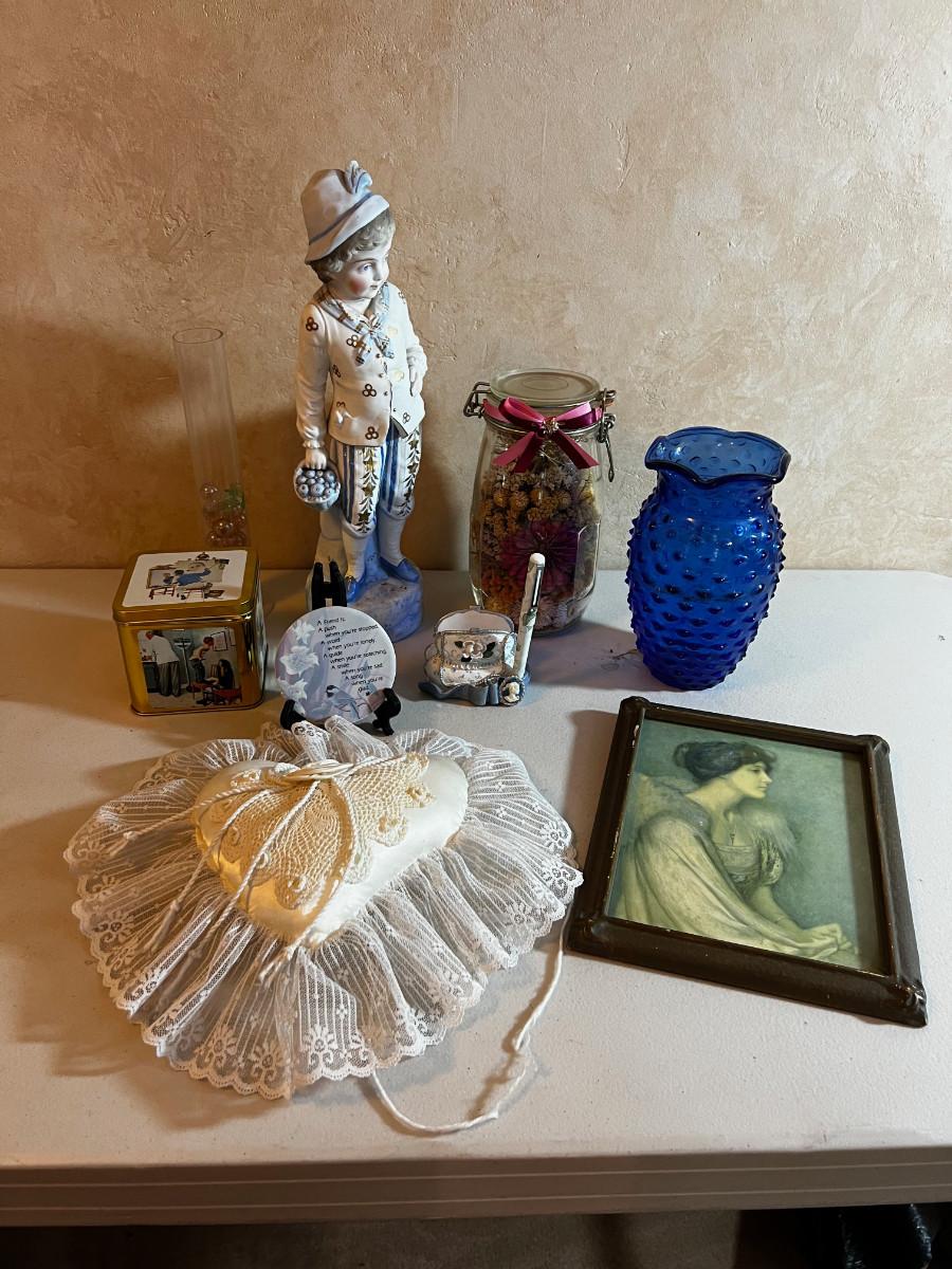 UP -- Many Décor' Items: Blue Vase Little Boy Blue Heart Pillow for Wedding etc.