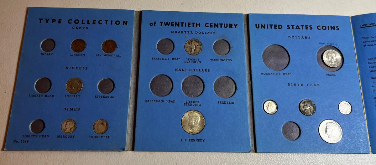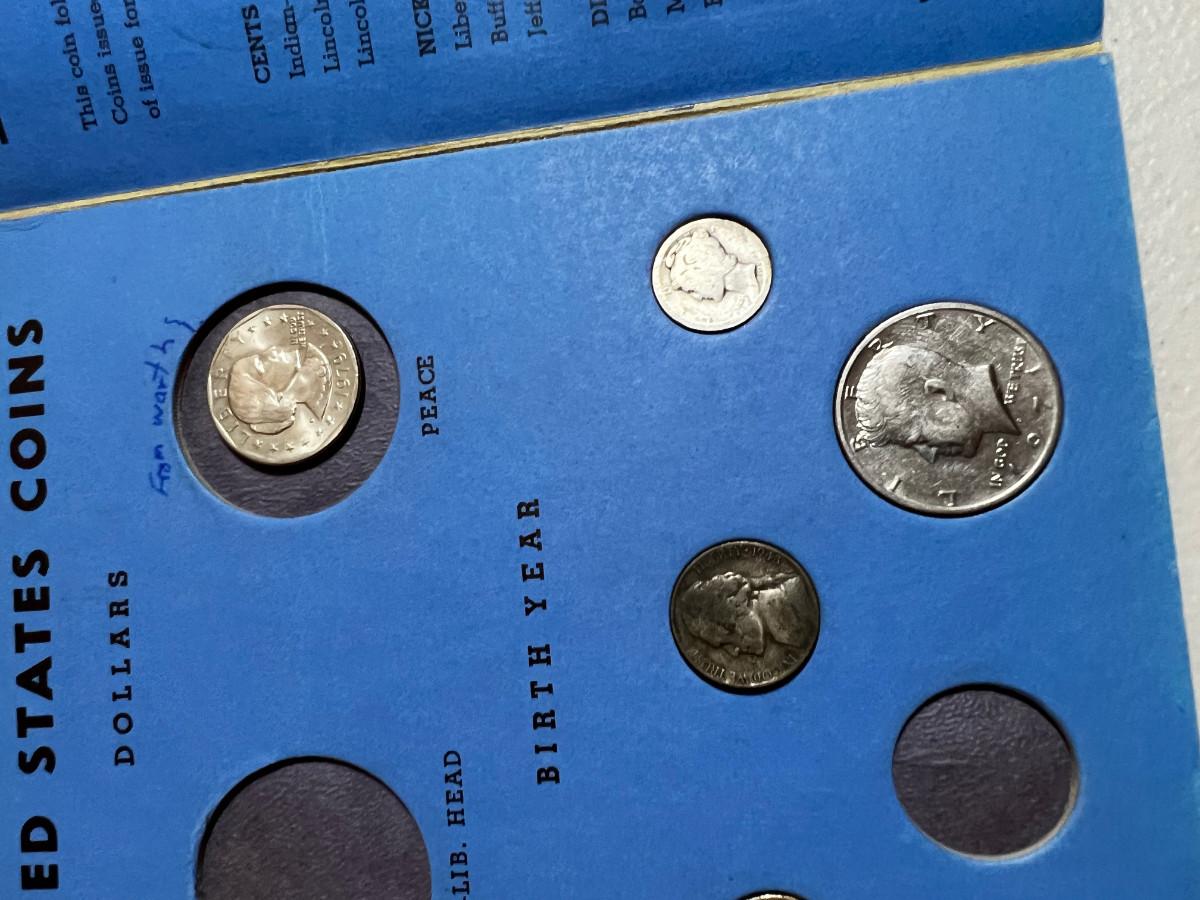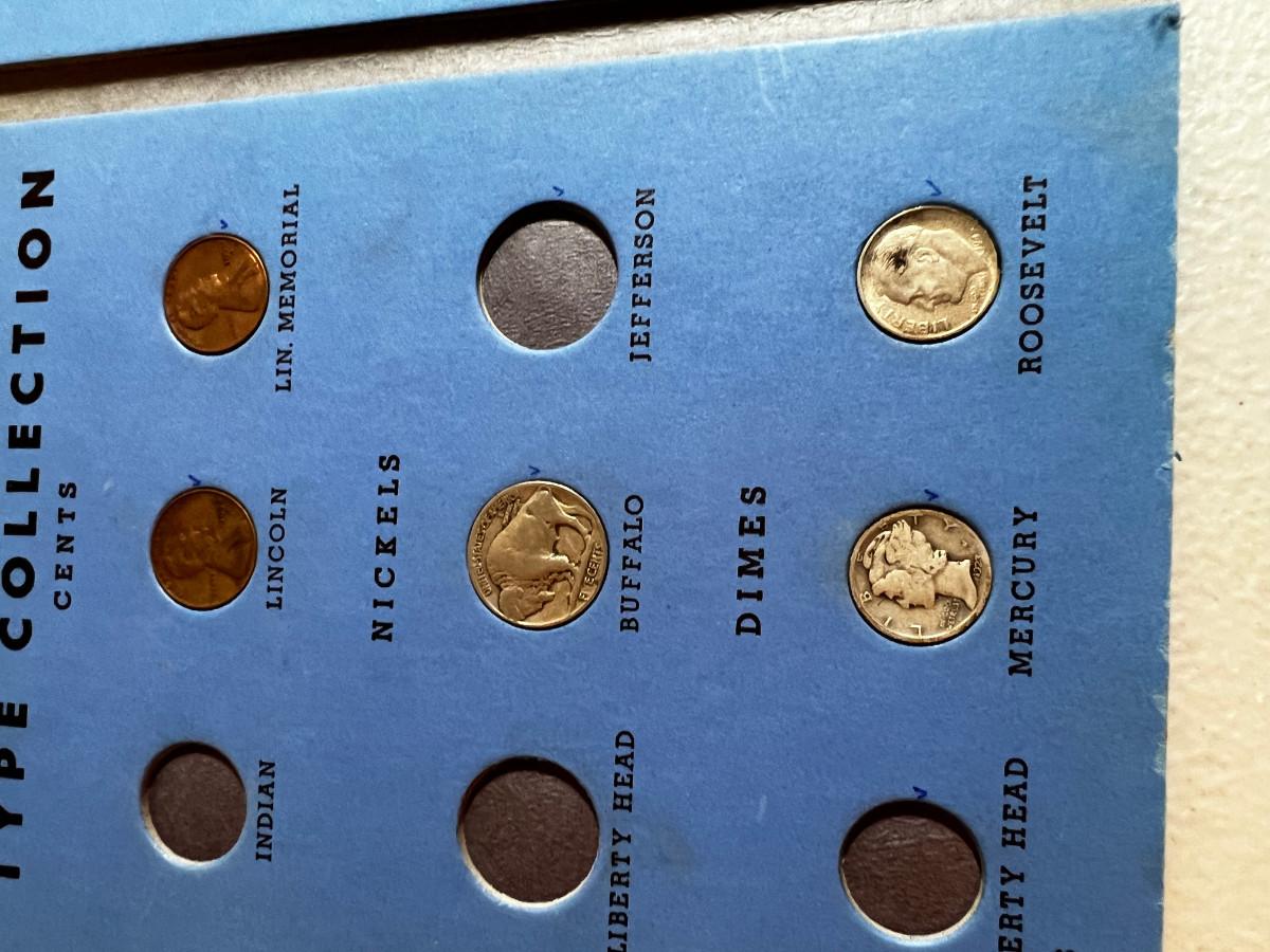 UP -- US Coin Book with Collectible Coins: Liberty Standing, Buffalo Nickle, Mercury Dime Plus More