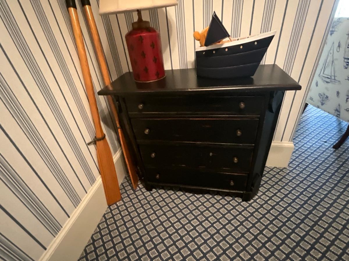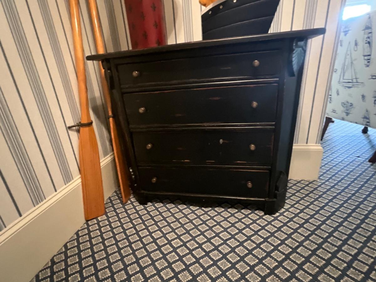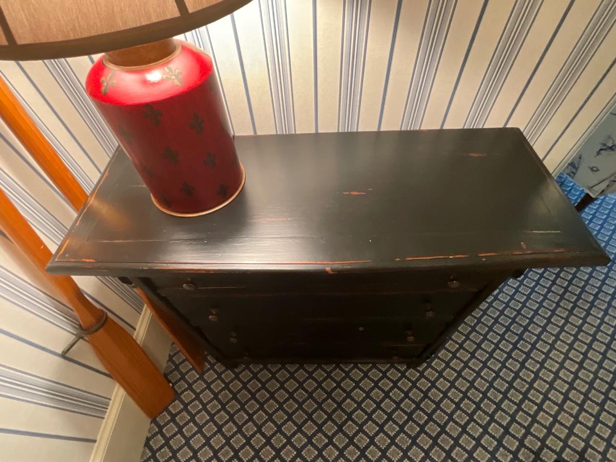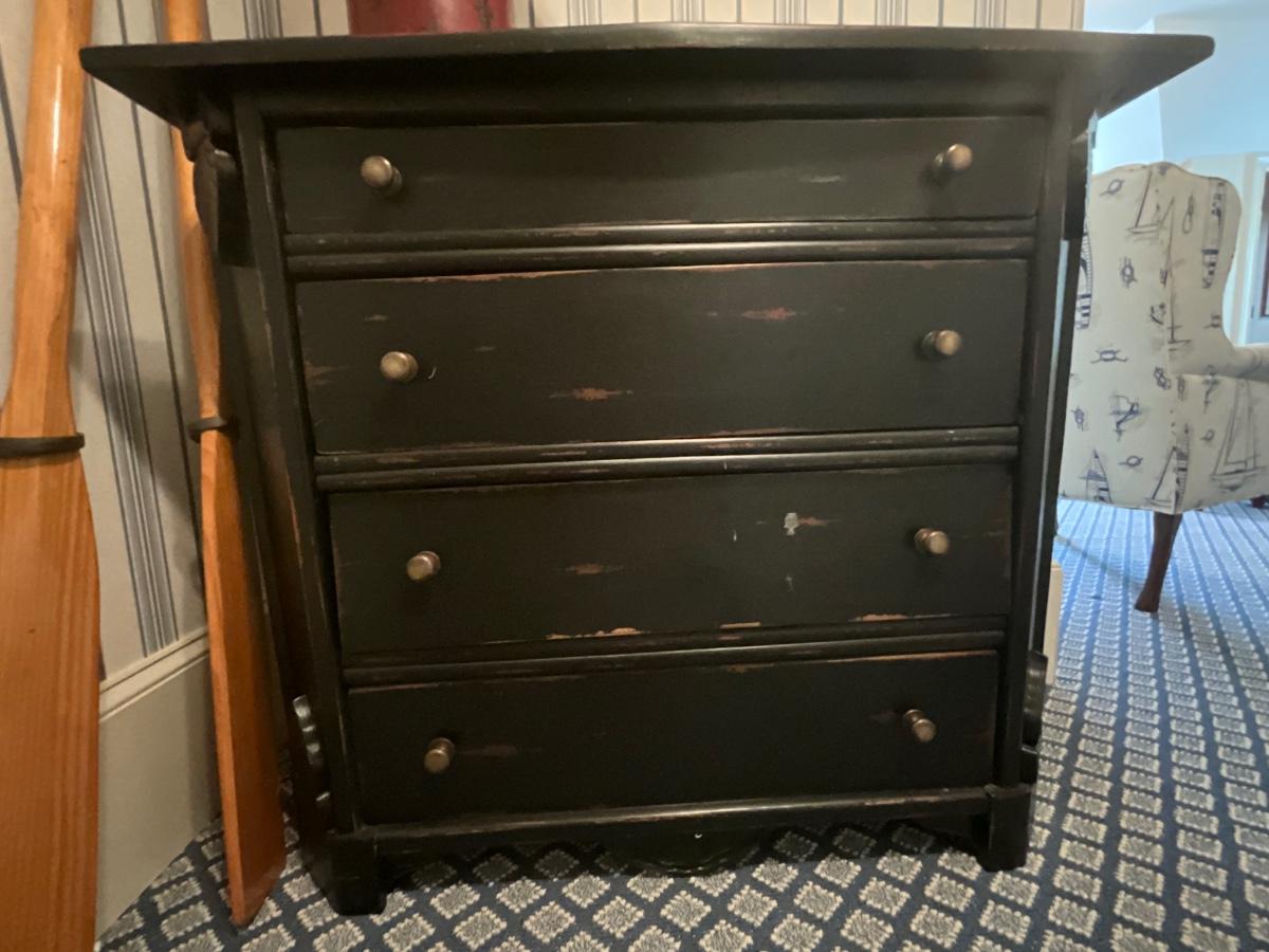UpCountry Fine Furniture Black distressed four drawer chest. It is 36 inches tall, 16 inches deep 41 inches wide. Excellent Condition