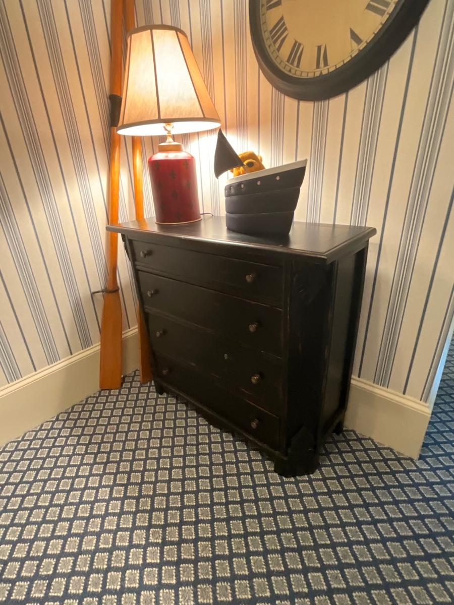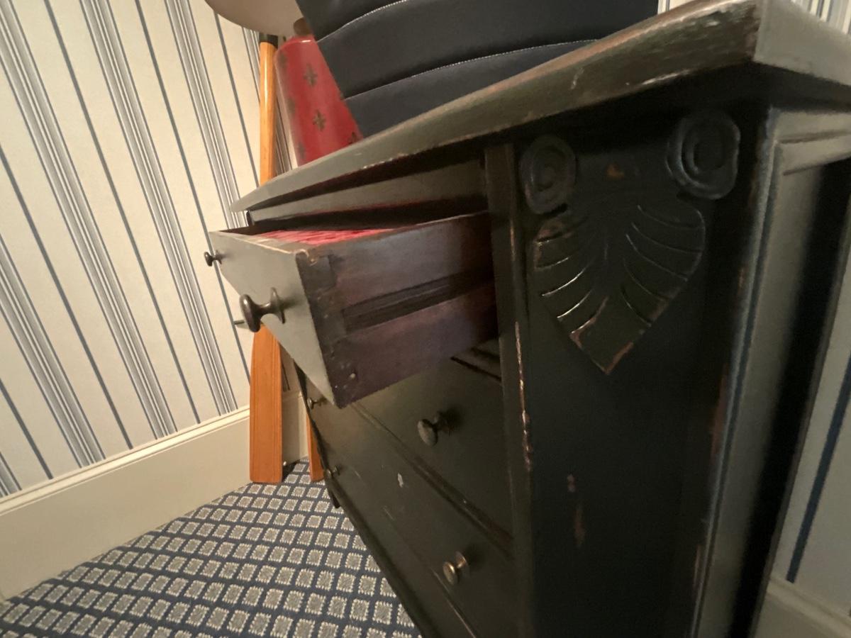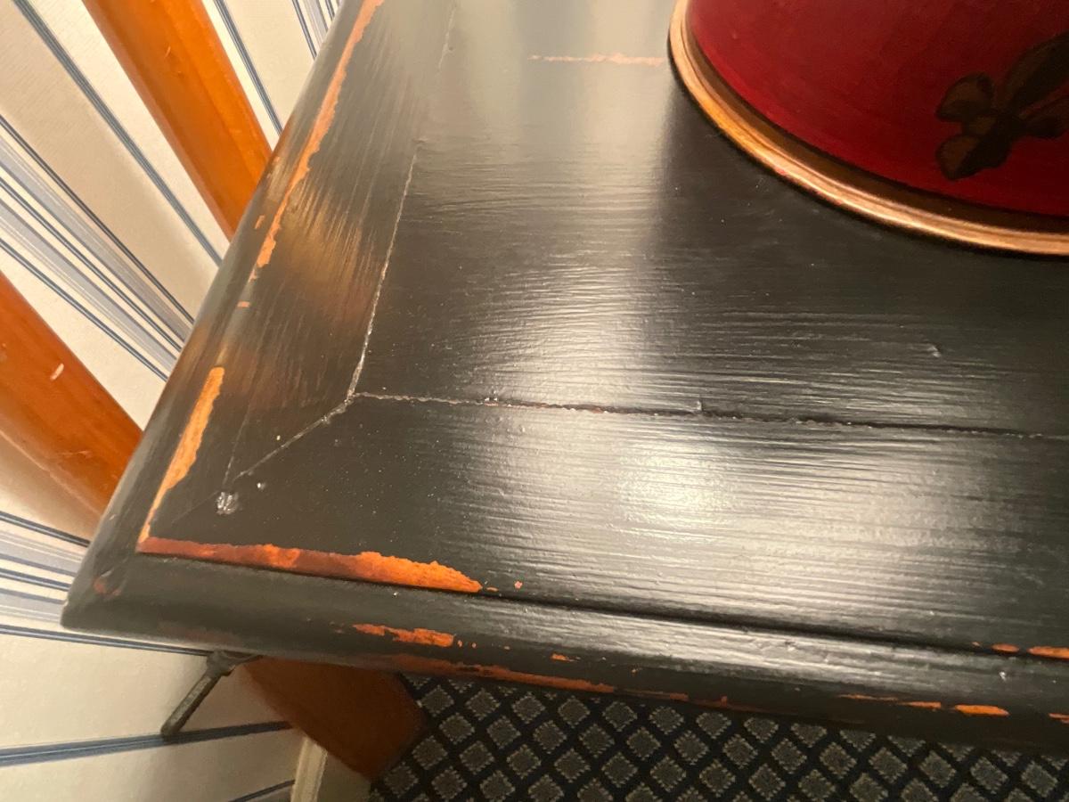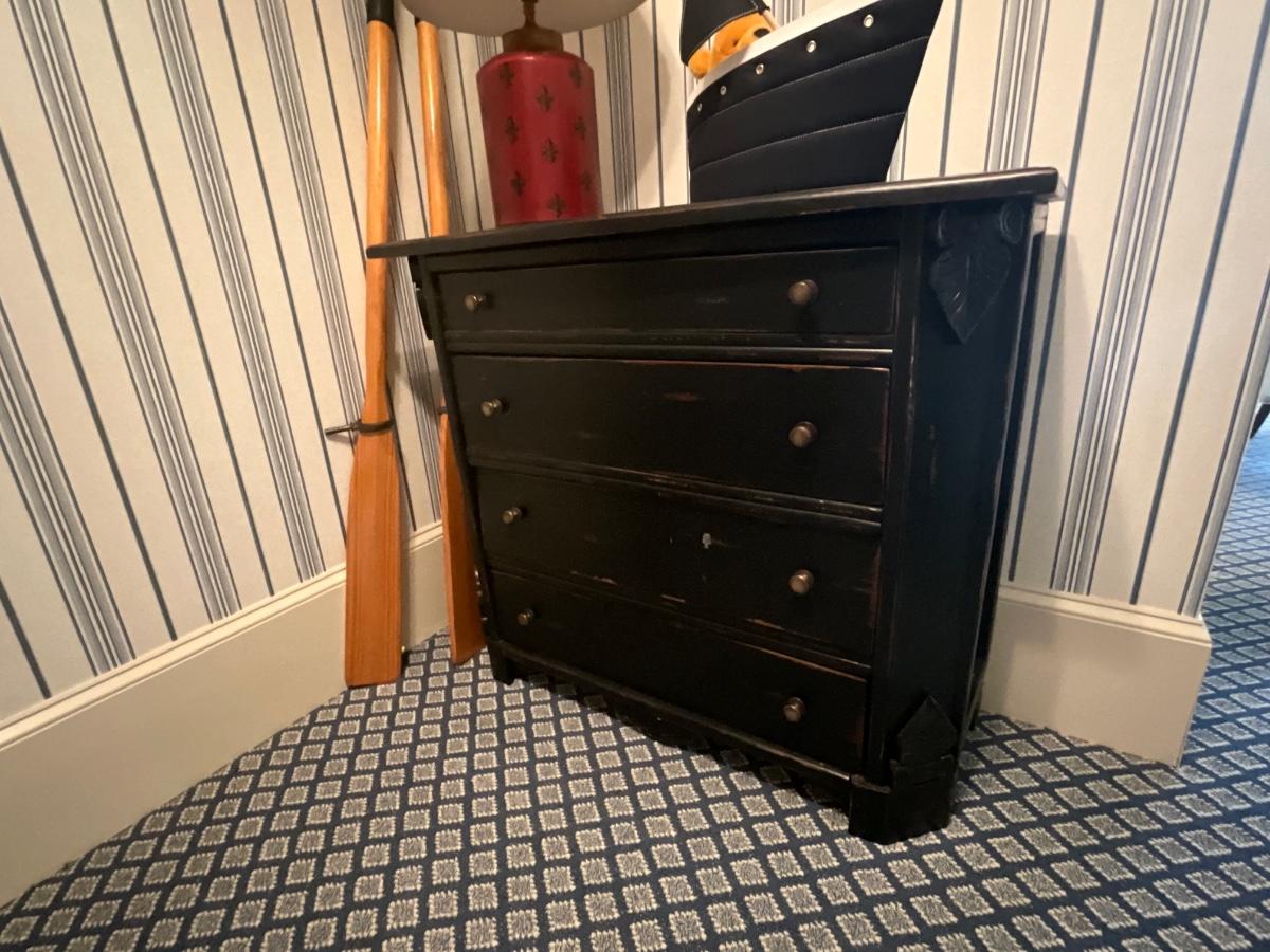 UpCountry Fine Furniture Black distressed four drawer chest. It is 36 inches tall, 16 inches deep 41 inches wide. Excellent Condition