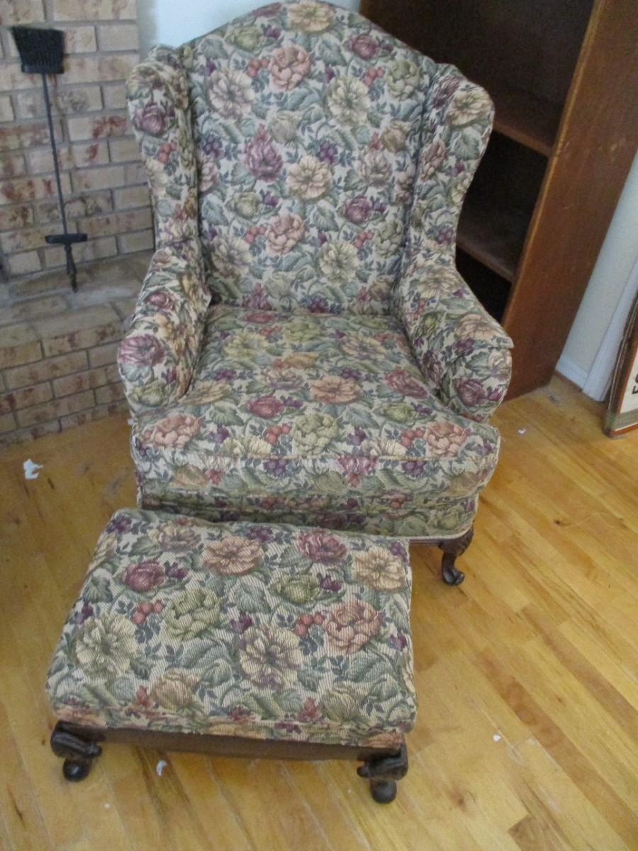 Upholstered Arm Chair With Foot Stool