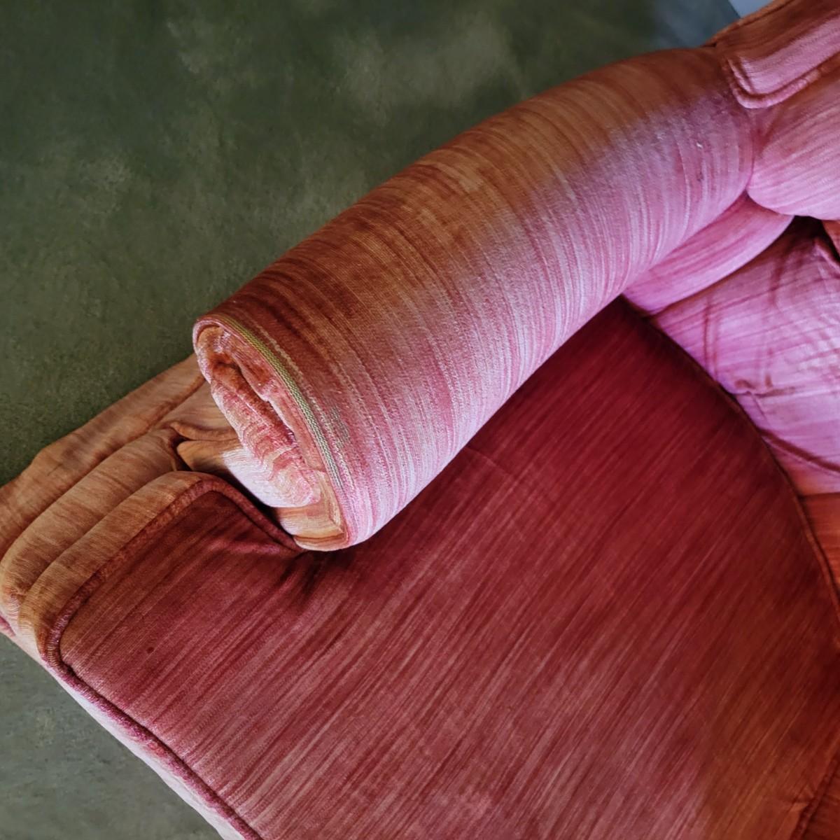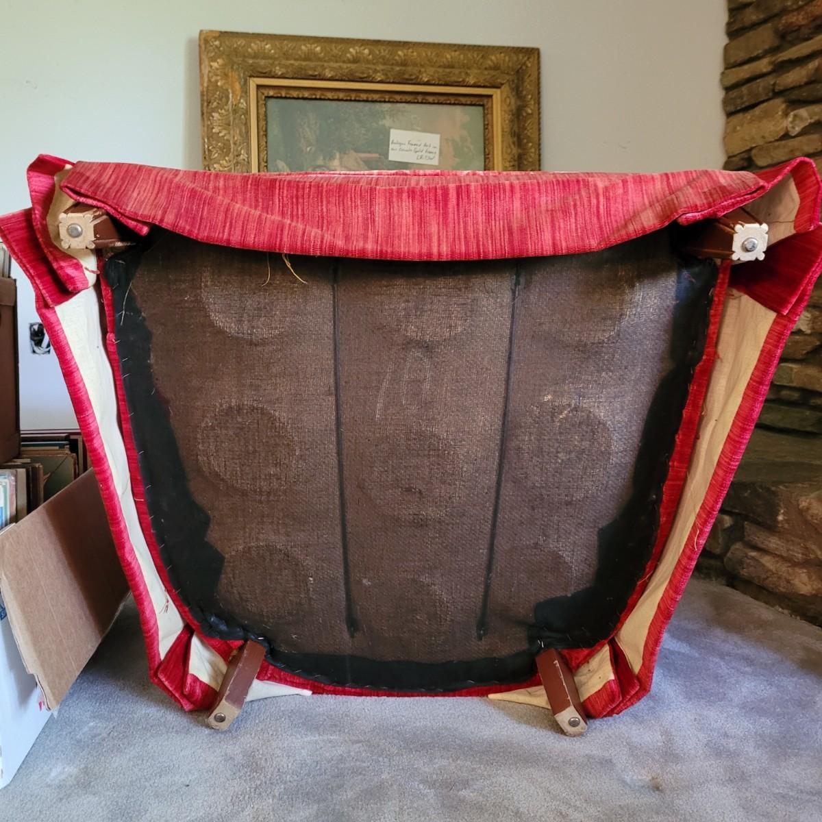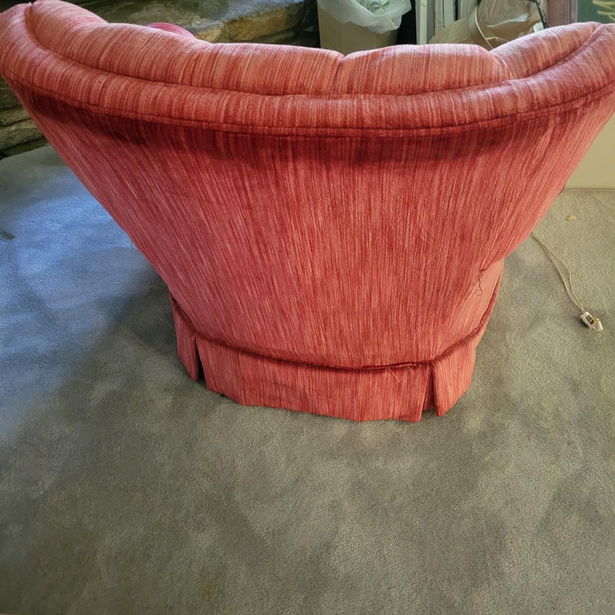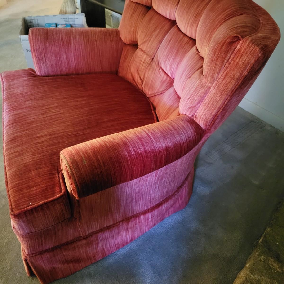 An upholstered chair in good condition, but is a little thread bare on the arms from use and a little faded. See attached pictures for more detail. Chair measures approximately 35" x 32" x 29" with a seat height of 15" Local pickup only
