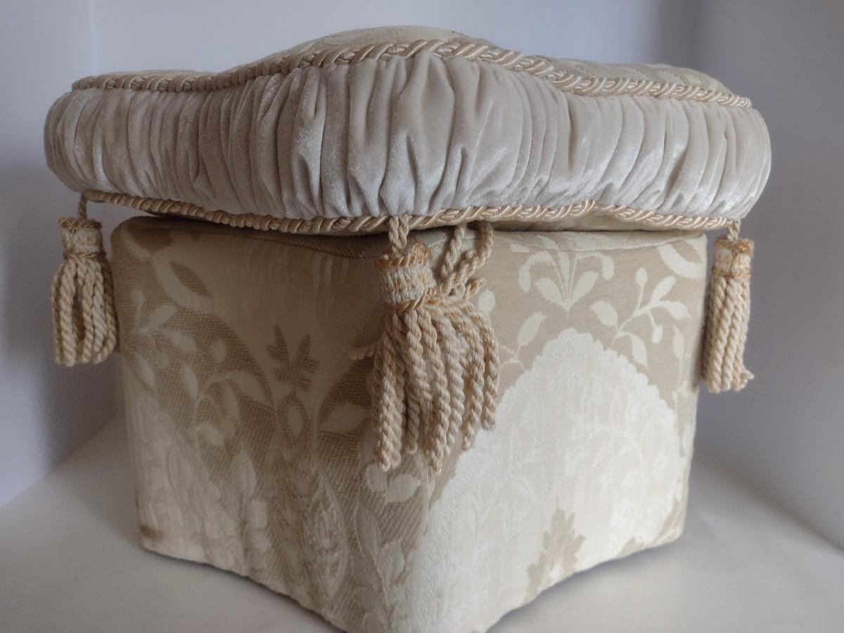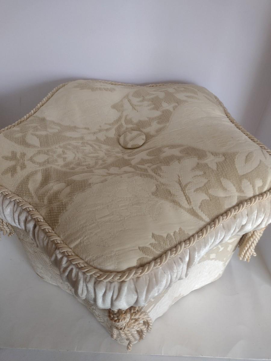 Upholstered Cushioned Ottoman. Upstairs item.