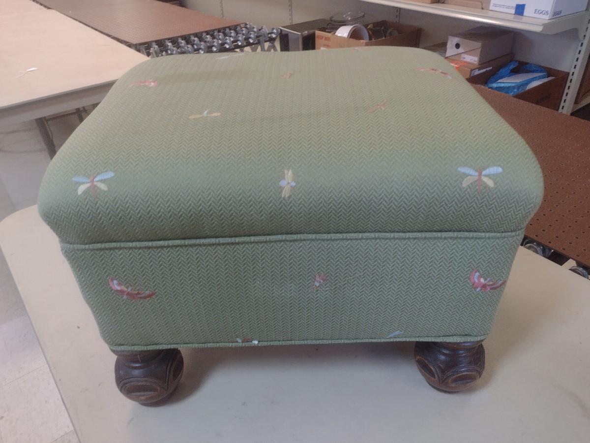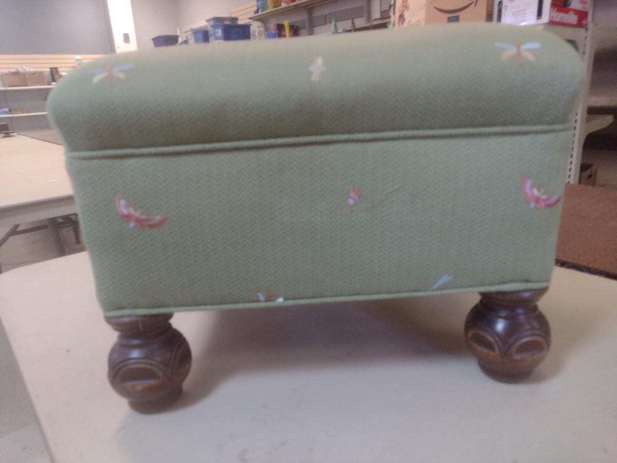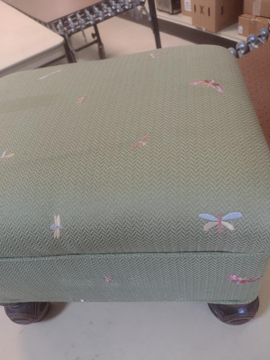 Upholstered Dragonfly Themed Foot Stool. Will need cleaning as shown