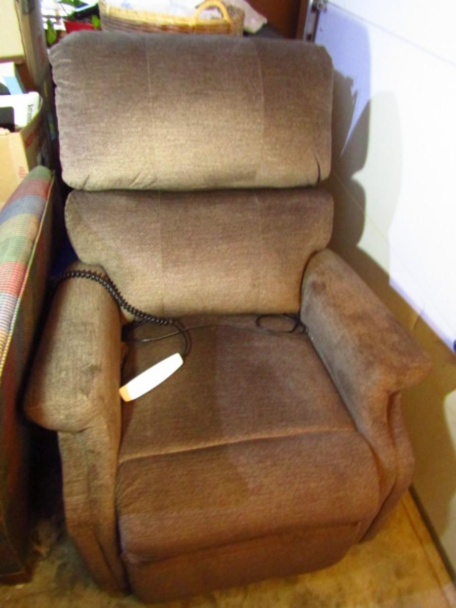 Upholstered Electric Lift Chair by Pride (Garage). Approx 34 inches wide.