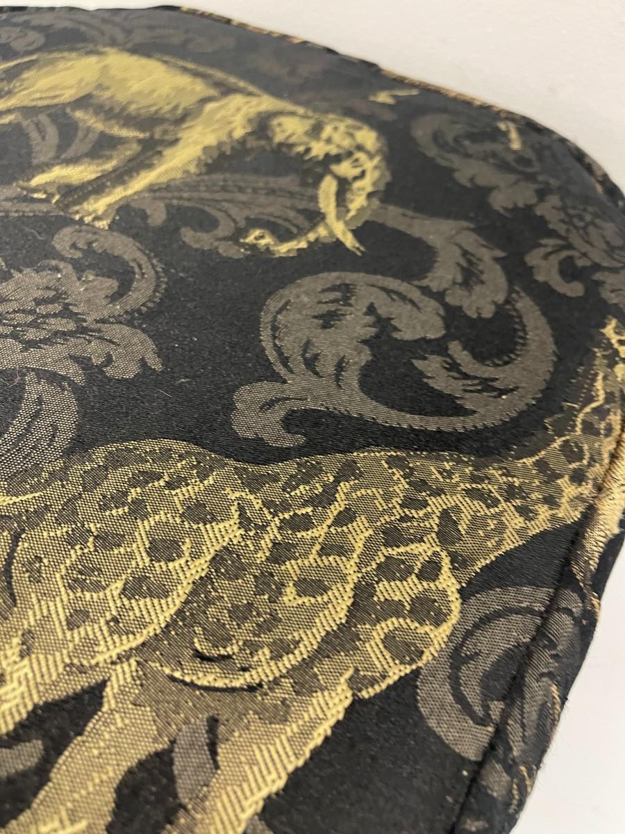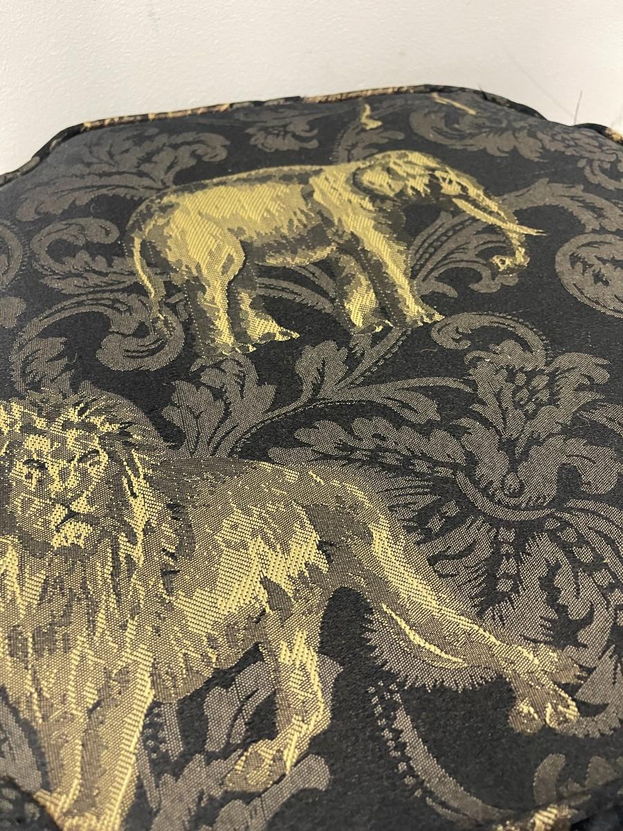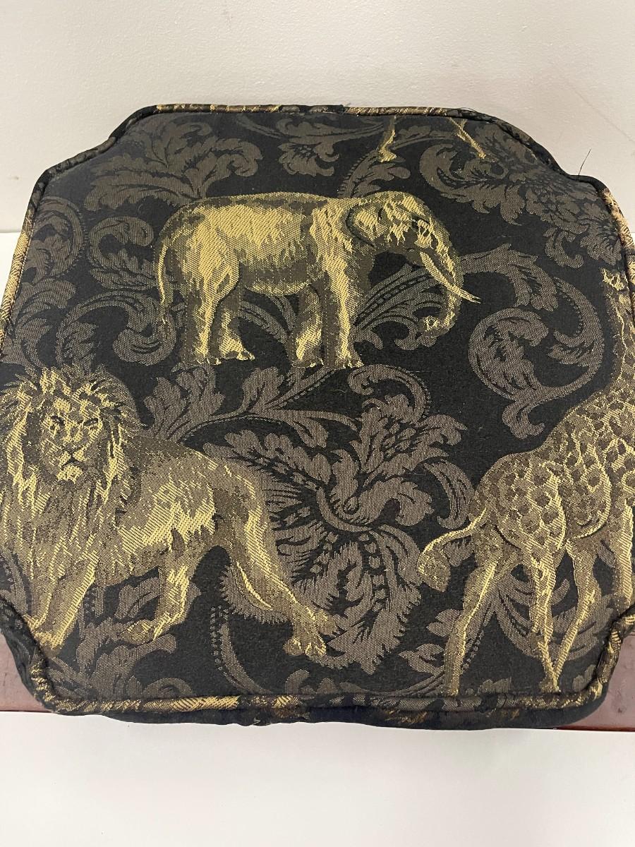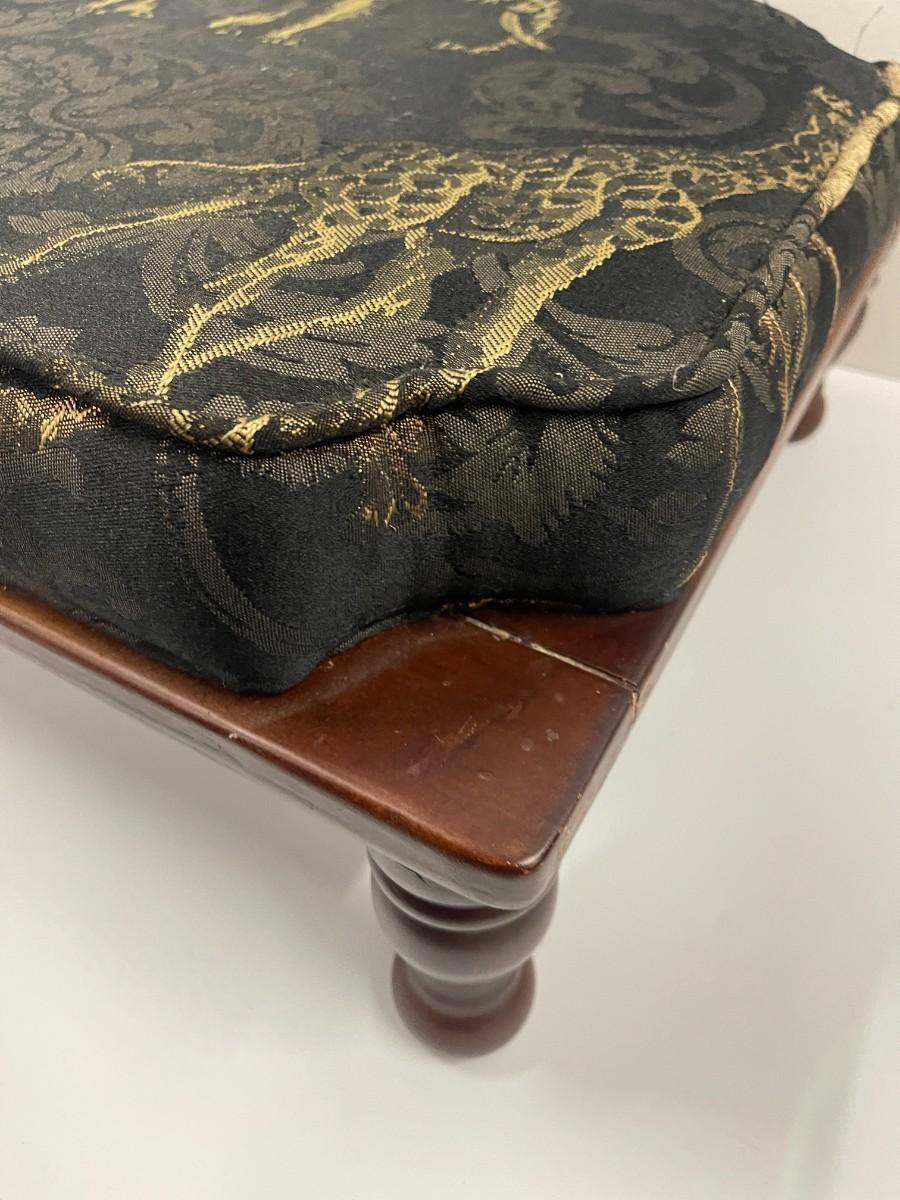 Upholstered foot stool. Good condition. Wood base shows some scratches, upholstery is clean and in very good condition. 16 1/2" x 8"